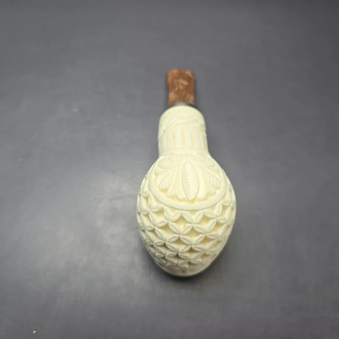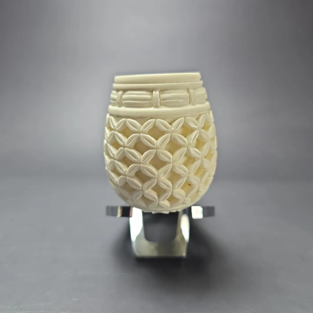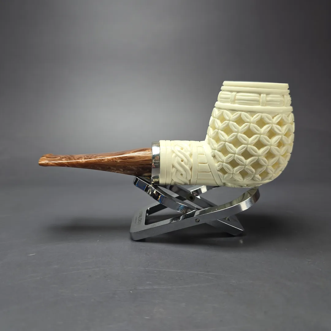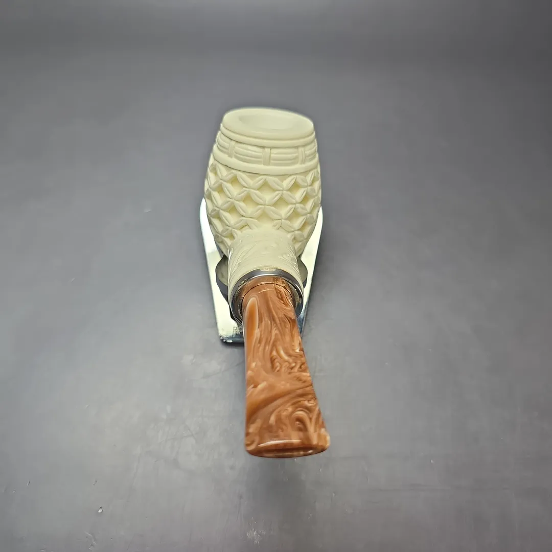 MBSD Meerschaum Silver Floral Brandy Reverse Calabash Block Meerschaum Pipe, New