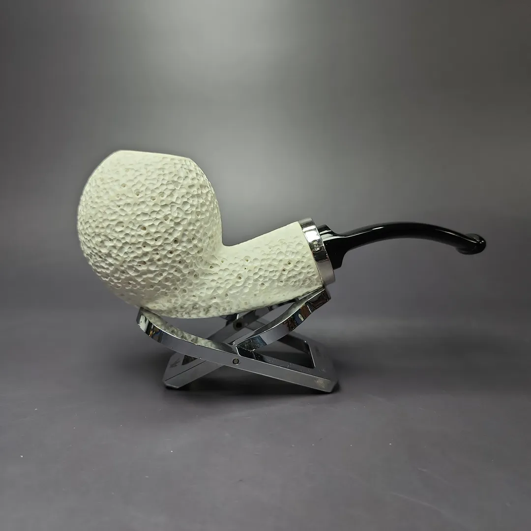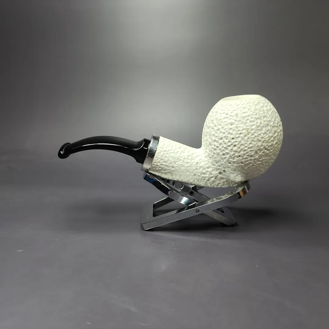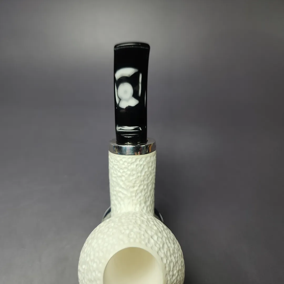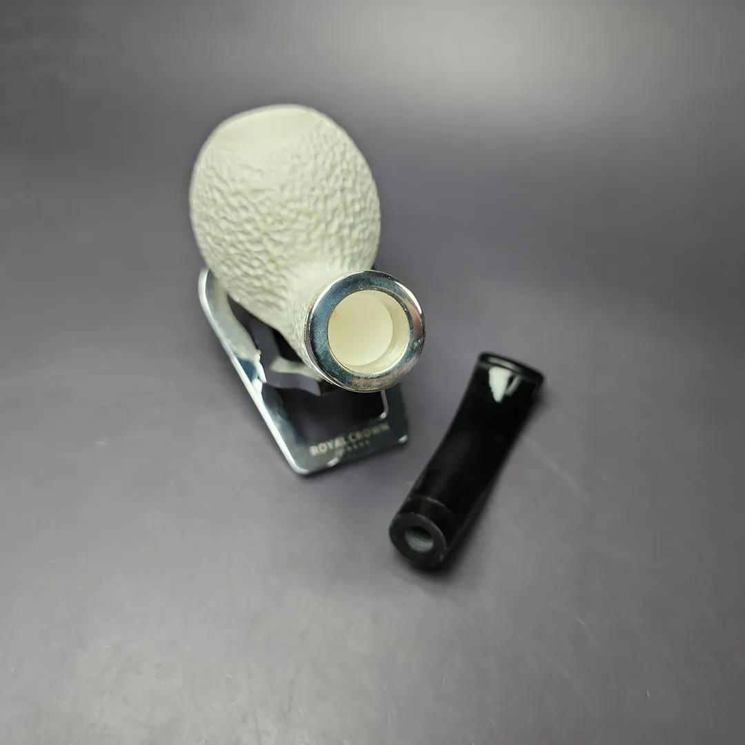 MBSD Meerschaum Silver Rusticated Apple Block Meerschaum Pipe, Briar-Mortise, New