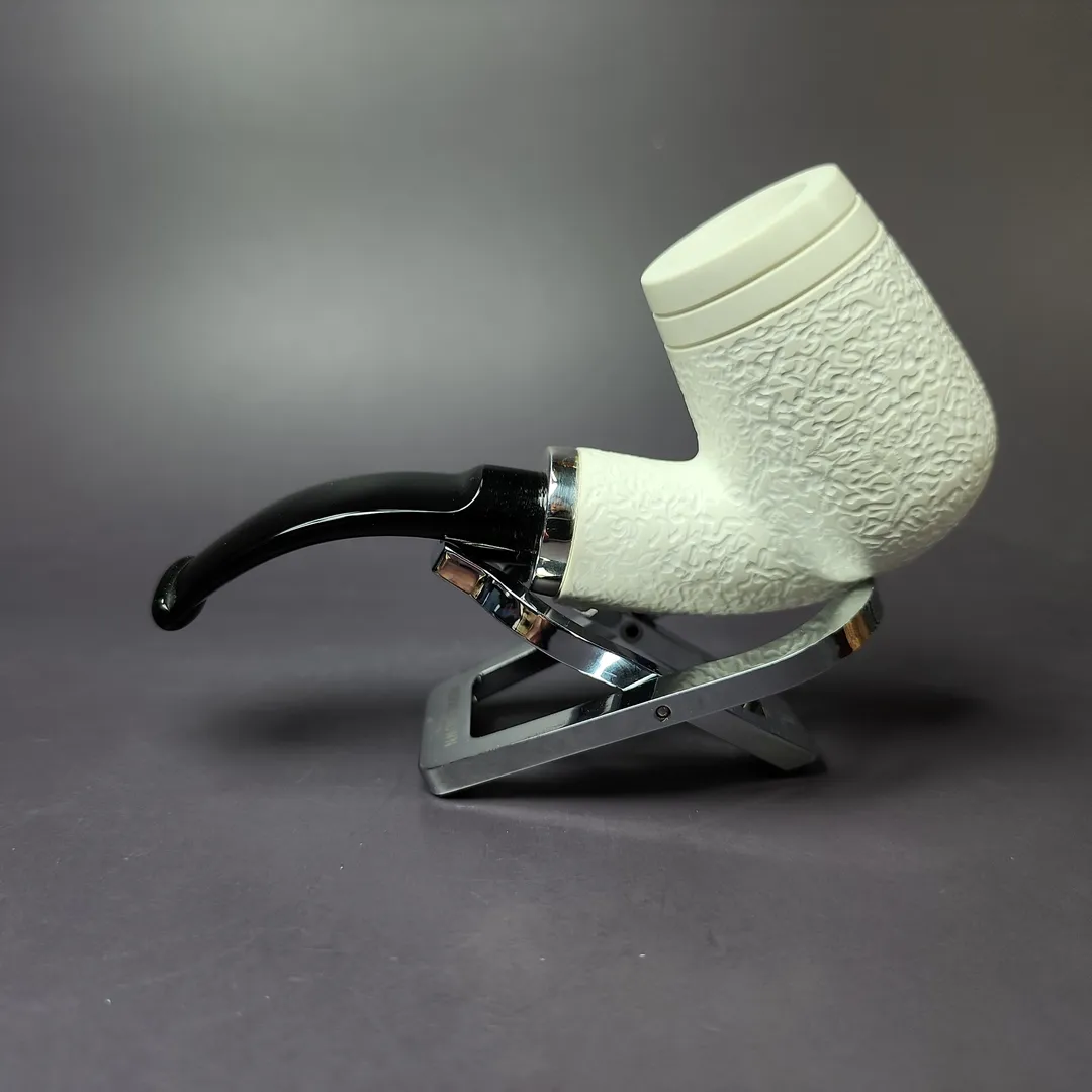 MBSD Meerschaum Silver Rusticated Rev Calabash Brandy Block Meerschaum Pipe, New