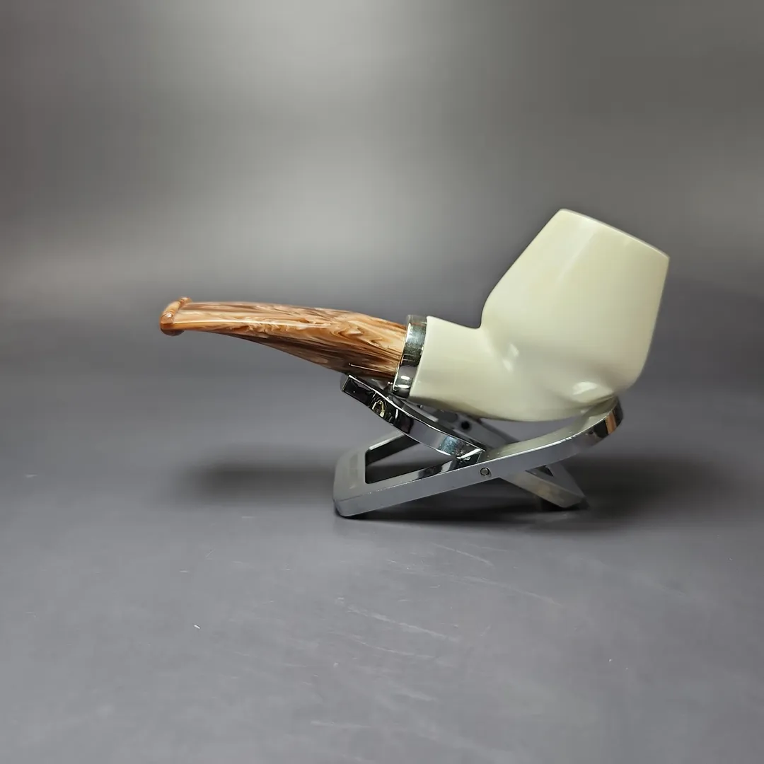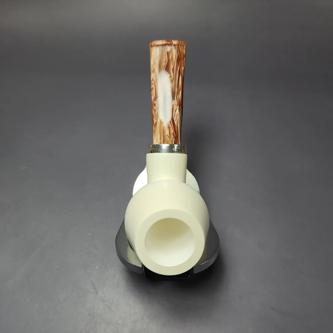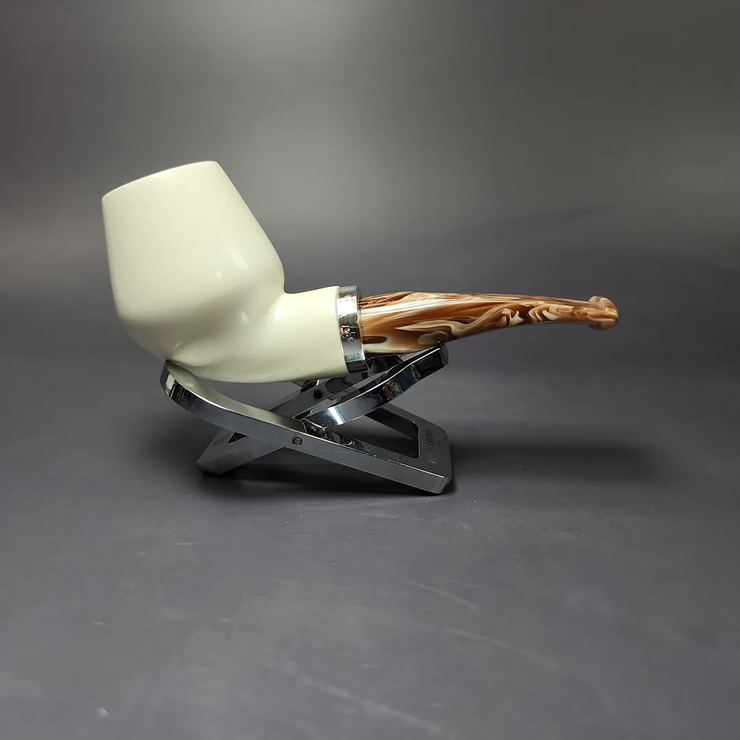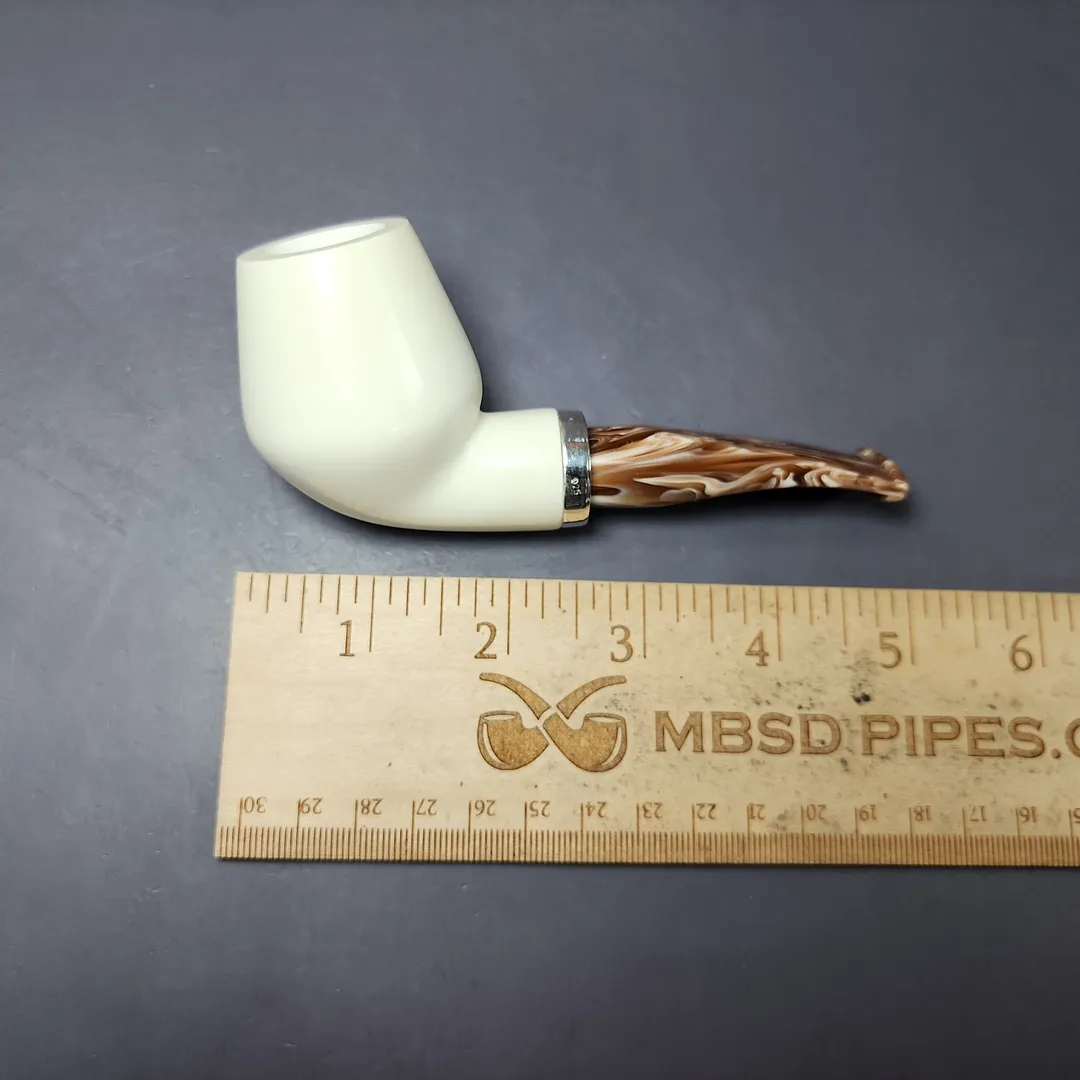 MBSD Meerschaum Silver Smooth Anse Reverse Calabash Block Meerschaum Pipe, New