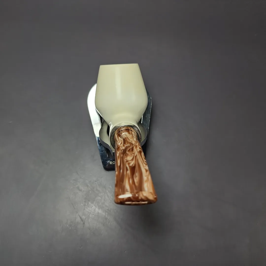 This MBSD Silver line, for example, is a meerschaum rendition of a rather classic shape in briar pipe design: the Anse, or Devil Anse (also sometimes known as the Belge). Taking its modern name from a popular Western, it’s a stubby shape with a distinct forward cant, sort of like a cutty that’s been shortened and had that extra length go instead into beefing it up a little. This one is fitted with a reverse calabash system in its shanks, making for even cooler, drier smokes.