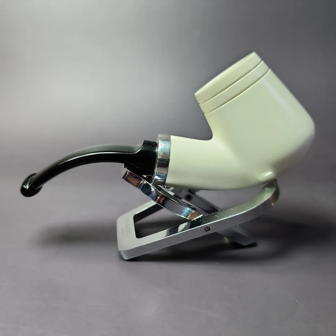 MBSD Meerschaum Silver Smooth Bent Brandy Block Meerschaum Pipe, New