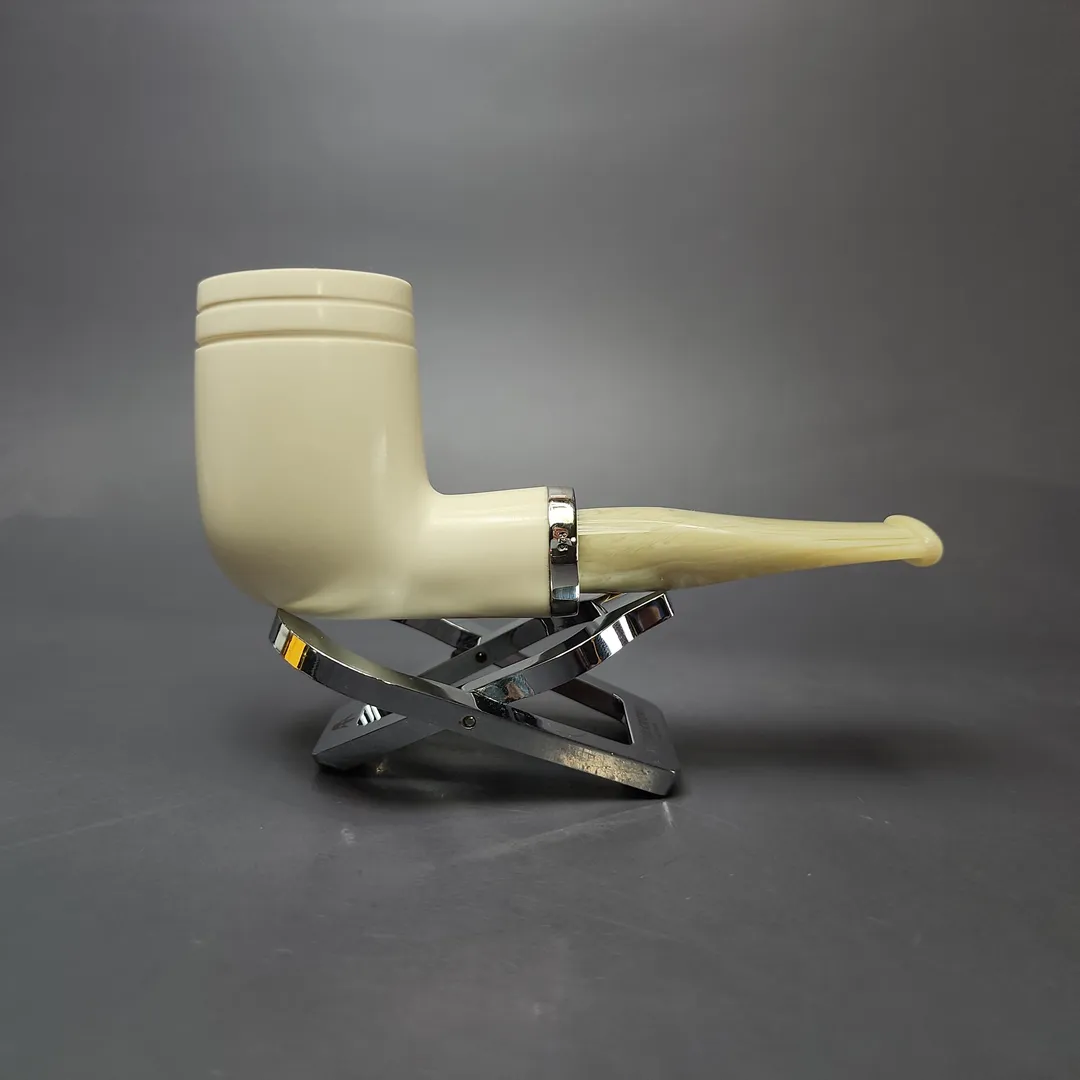 MBSD Meerschaum Silver Smooth Stack Billiard Reverse Calabash Block Meerschaum Pipe, New