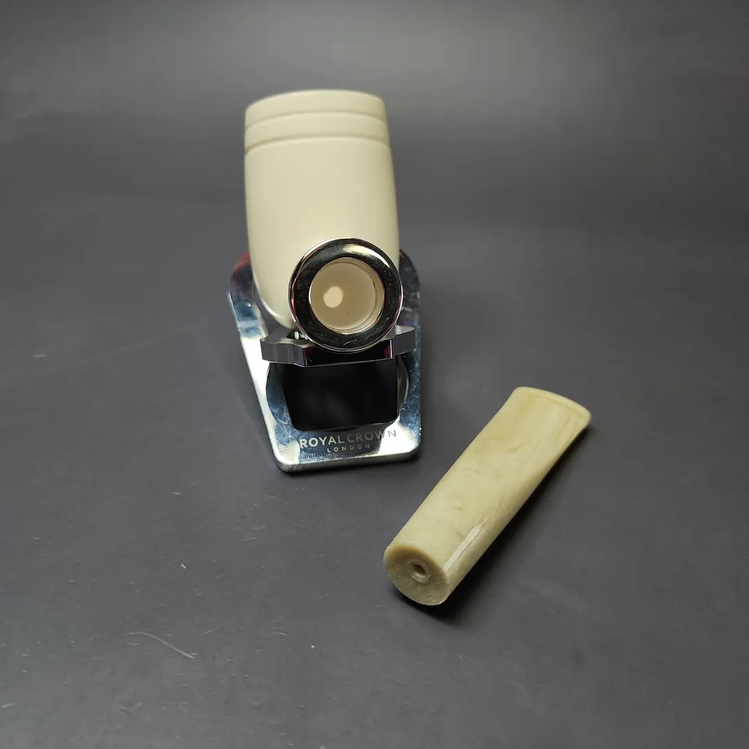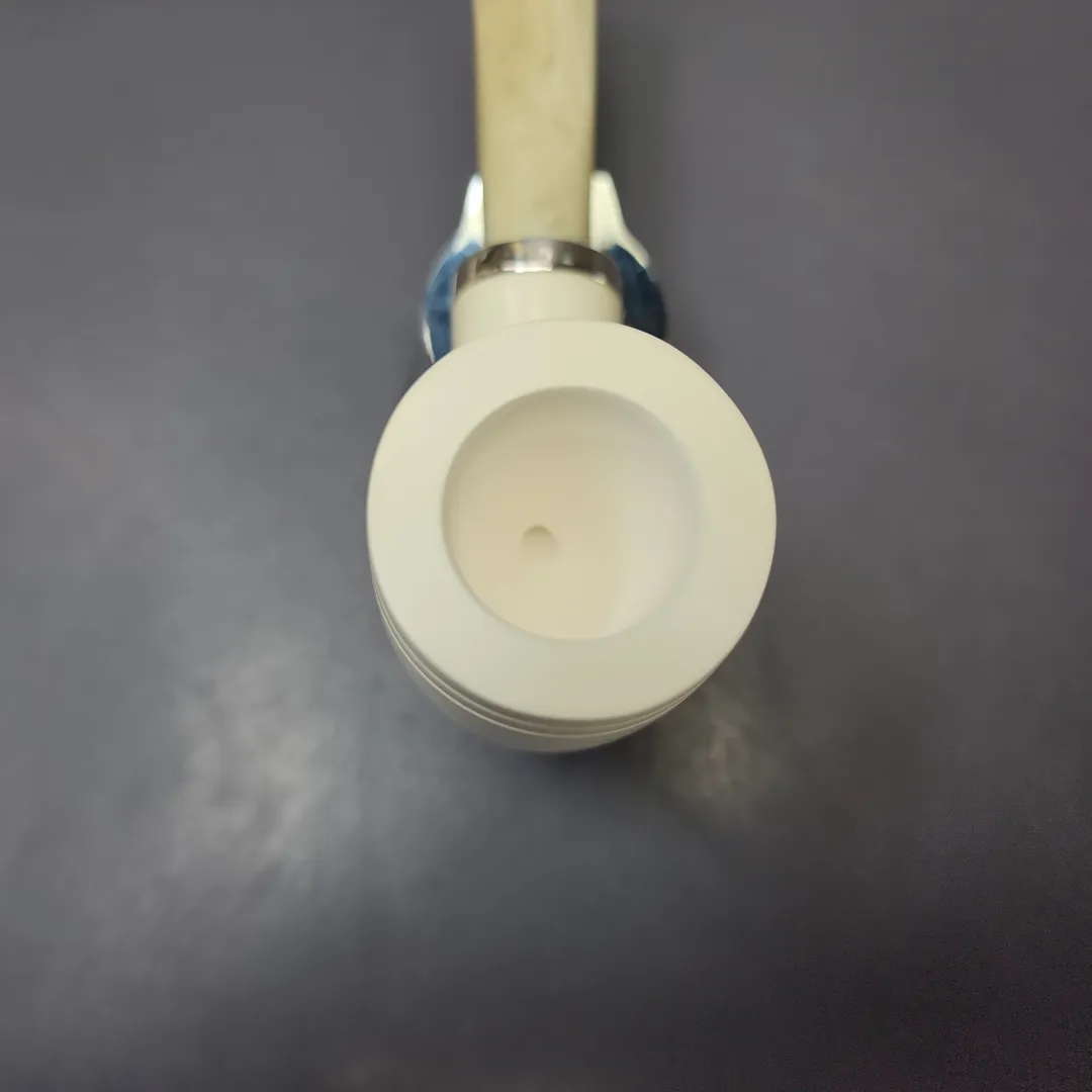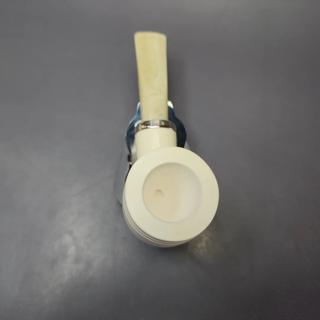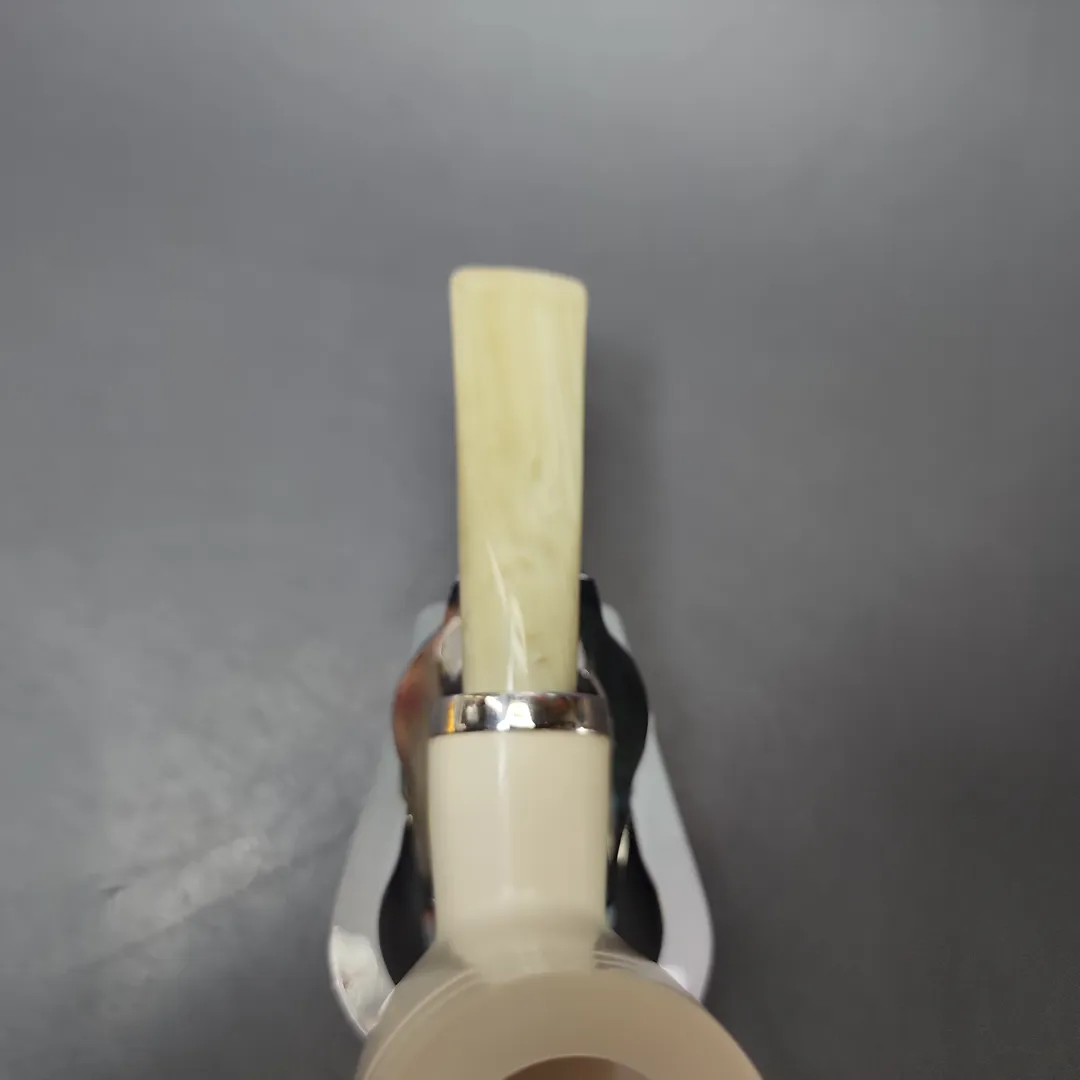 This particular Silver line finds its inspiration in the fascinating genre of reverse calabash designs in the world of artisan briars. Many of our Silver line meerschaums feature reverse calabash systems, but this is similar to one of the first designs that came out of that endeavor, under the influence of figures such as Rolando Negoita, Tom Eltang, and Robert Vacher of Laughing Moon. It’s a stout and sturdy design, with a fantastically deep main chamber, along with the second chamber in its shank for helping keep things even more cool and dry.