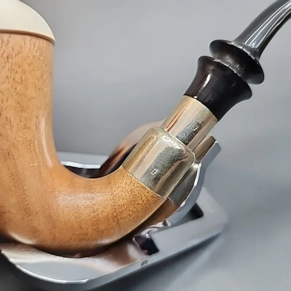 We meticulously carve our calabash pipe bowls from the highest-grade block meerschaum. This choice enhances the smoking experience by enabling tobacco to burn at lower temperatures. Block meerschaum is exceptionally lightweight and offers excellent resistance to excessive heat. It also exhibits superior coloring behavior, unlike pressed meerschaum, which doesn’t develop those appealing hues.