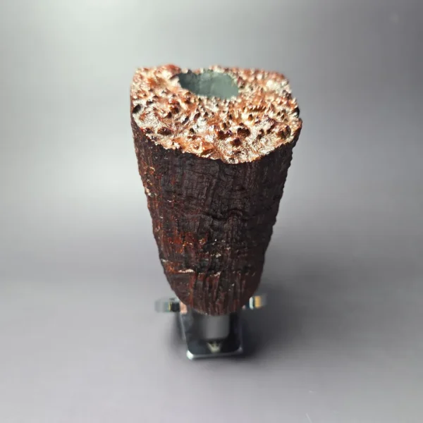 While Gregory Polla’s Merchant Service output has been, thus far, focused entirely on small, serially-produced batches of classic shapes (which MBSD Pipes also sells), the Merchant Service Originals series is something a little different. Polla is, after all, an artisan, and has for a long time desired to offer something even more creative than his usual Merchant service lines. This is where the Merchant Service Originals series comes in: like GBD’s Unique, Dunhill’s Collector, or Comoy’s Designer series, the new Originals are—as the name implies—individual, one-of-one designs based solely on Polla’s creative whims and the shapes best suited for a particular block of briar. Some lean toward extravagant, freeform styles, while others take cues from traditional Anglo-French staples not found in the Merchant Service catalog. This one falls into the former camp, being a magnum freehand with a slight Italian edge, dressed in a fantastic, ring grain sandblast and contrast stain.