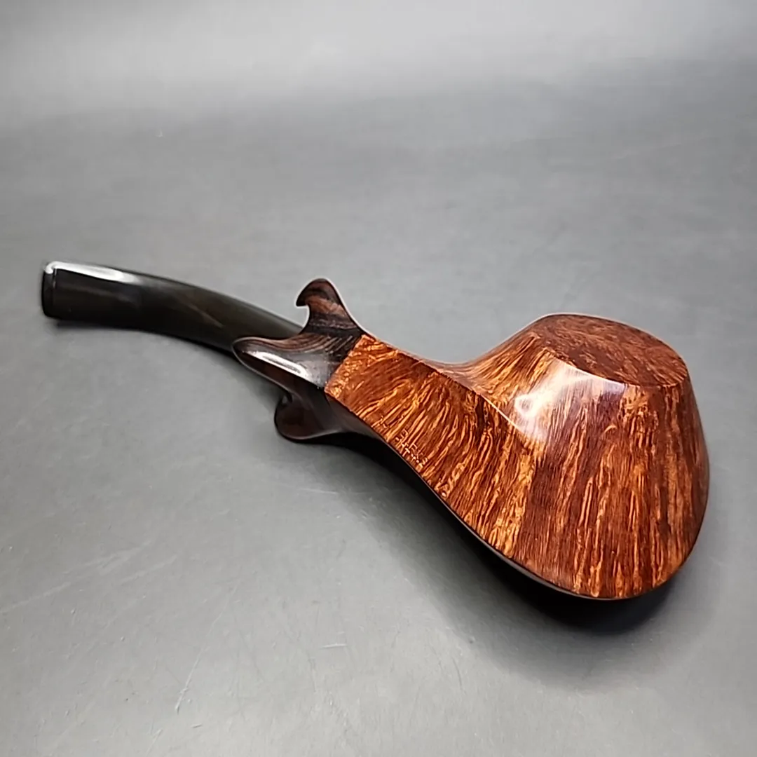 When this particular Michael Parks pipe landed on my desk, I wasn’t sure what to make of it. Yes, it’s a beautiful pipe, one that does, as mentioned, bur the line between a tool for smoking and a work of art. But what was I to call it? And what are these decorations, such as the four-pronged shank accent, or the mysterious “eye” on the pipe’s left side? Thankfully, Mr Parks himself was gracious enough to take me through the pipe’s design. As he explained, the shape was called a “Blowfish-Mermaid,” which makes sense given the flattened panels on the pipe’s right side, along with the “aquatic” aesthetic the overall form displays. The stem is ebonite, while the shank accent is Brazilian rosewood. The “eye” was an experiment by Parks using crushed mother of pearl, which Parks’ fans will likely recognize as an approach he later adopted for his stem inlays. The pipe is a grade V, which at the time this pipe was made (2004), was Parks’ highest in his system of ascending Roman numerals. In later years, Parks would expand the grading system up to VII, before changing his system altogether in 2022.