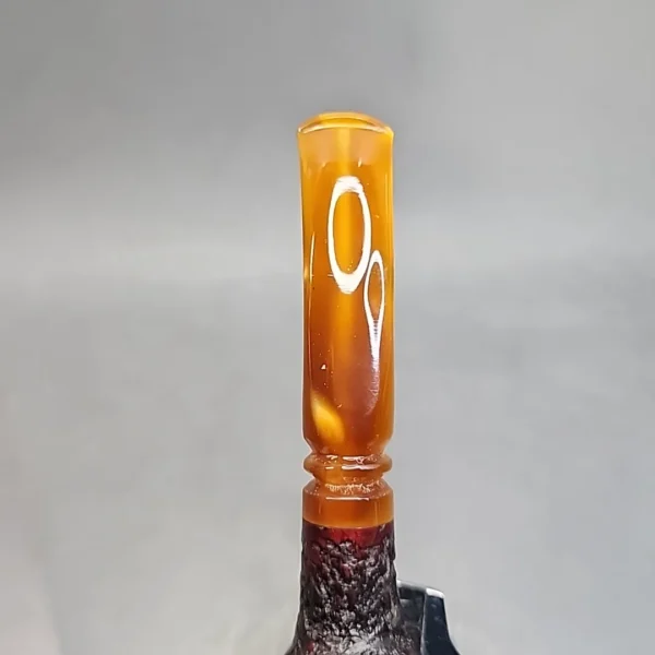 I’m always intrigued to see what kinds of pipes from the earlier days of the American artisan scene end up on my bench. Though it is not nearly as well documented as in later decades, American pipe-making before the turn of the millennium was a fascinating culture of stylistic and technical exploration, with many approaches having been lost due to the demand for the kinds of pipes that are popular today. This Mickles is an example of that sort of thing; it’s a rugged, rusticated, bent apple-like shape, but the bowl exterior has been paneled, giving it a unique appearance and feel. The craggy, black rustication works well with the smooth polished red rim, just as it does with the hand cut, yellow lucite stem. It’s closer to Italy than Denmark as far as precursors go, but I’d be more comfortable calling this an American pipe than either.