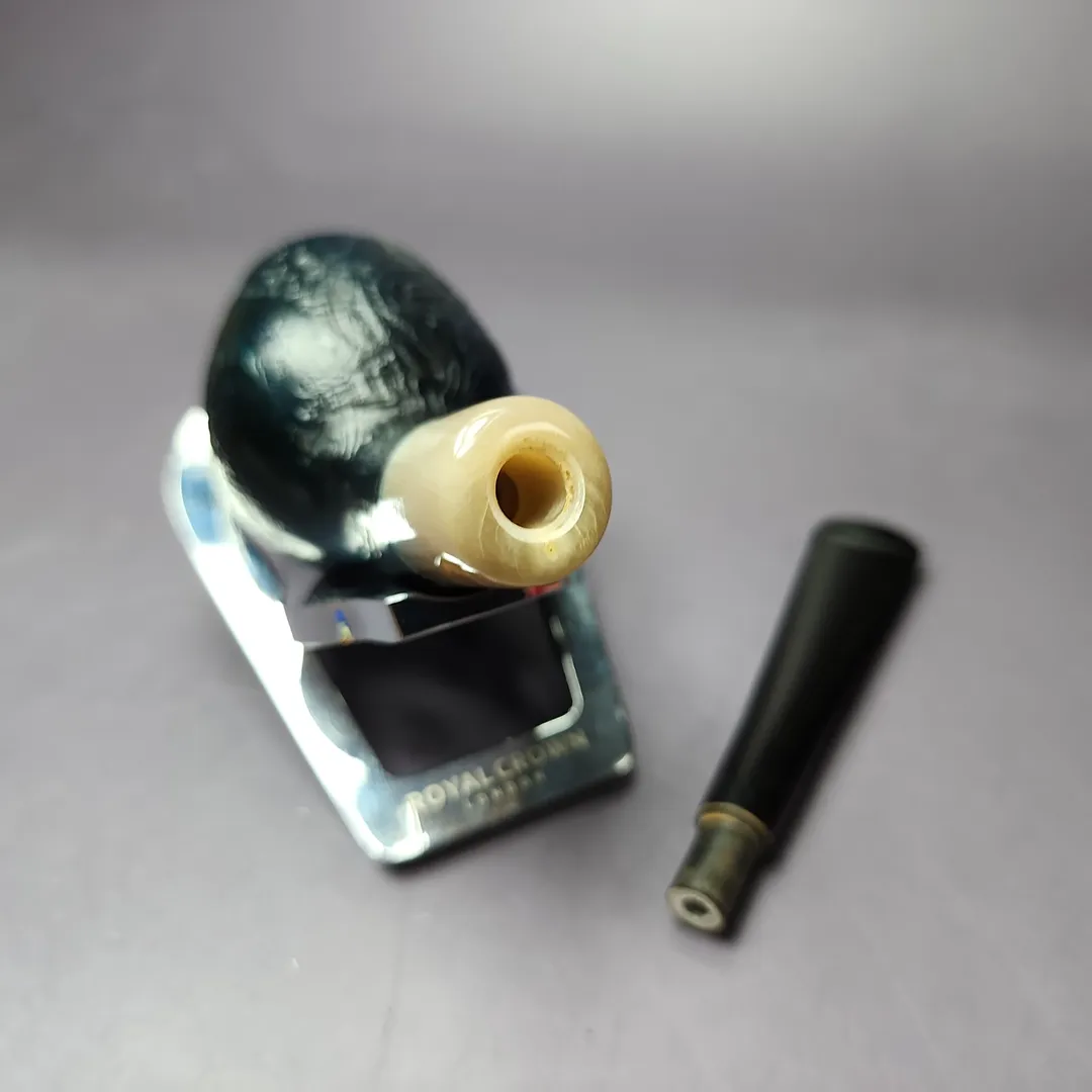 This pipe is completely unsmoked. There’s a small blemish in the finish and some slight weathering to the horn, so the price has been adjusted. This will not affect the pipe’s smoking properties and is difficult to notice even on a cosmetic level.