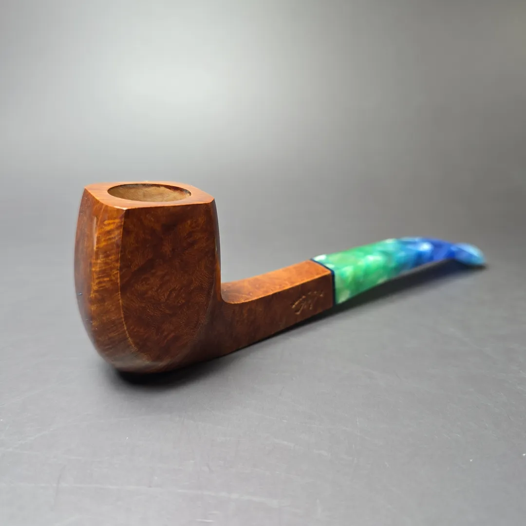 This particular pipe came to us with a batch of new old stock (NOS) pipes from a store closure a few states over. Based on what I was able to research, the Mina company runs a pipe workshop in China, not unlike HS Studio or GH Zhang, which produces a number of different makes based on the style of pipe. This one is a distinctly colorful take on the traditional foursquare, or panel billiard, not unlike those of, say, Savinelli.