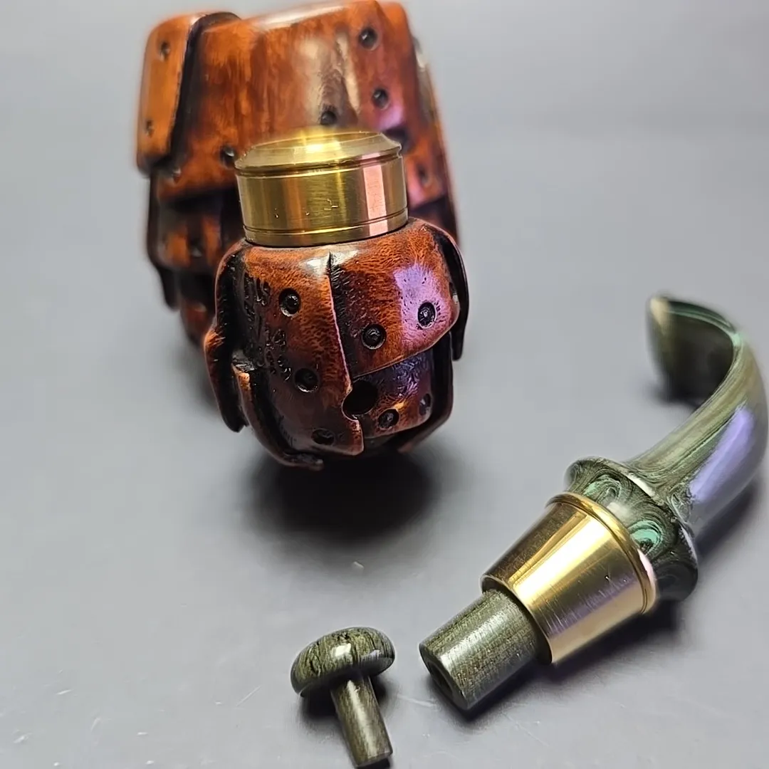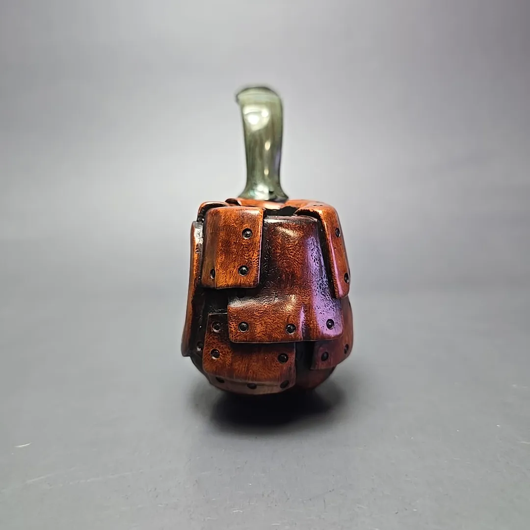 While some pipe-makers take inspiration from the natural world, or from the technologies of present and past, few of them in the contemporary seek to represent these forms in their work. Czech artisan Ondrej Bárta of Moonlight pipes does just that, in a way that recalls the intricate, figural carvings of briar pipes from the turn of the 20th century. But Ondrej also departs from the figural approach of early briar pipes by combining it with high-grade materials and a careful attention to grain patterns that is far more modern.