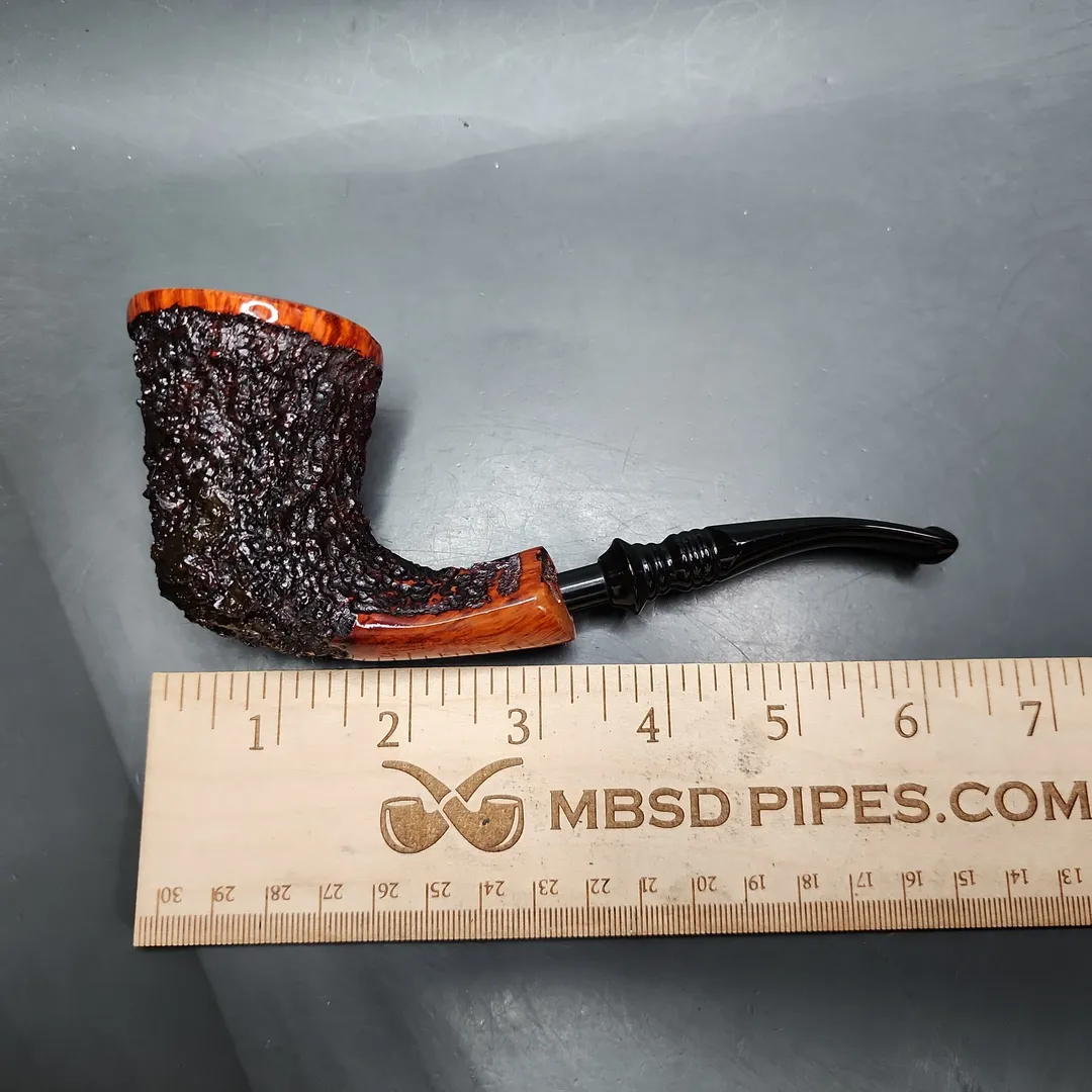 The Aalbørg make was produced by Nørding a long while ago now—at least a decade ago, probably longer—but this one looks almost like it was made yesterday. It’s a very Danish freehand in its basic form, though I will note that the mixed finish, especially in the pipe’s rusticated sections, does have a little bit of Italian character to it, reminiscent of Castello’s Sea Rock or the finishes used by the Becker family.
