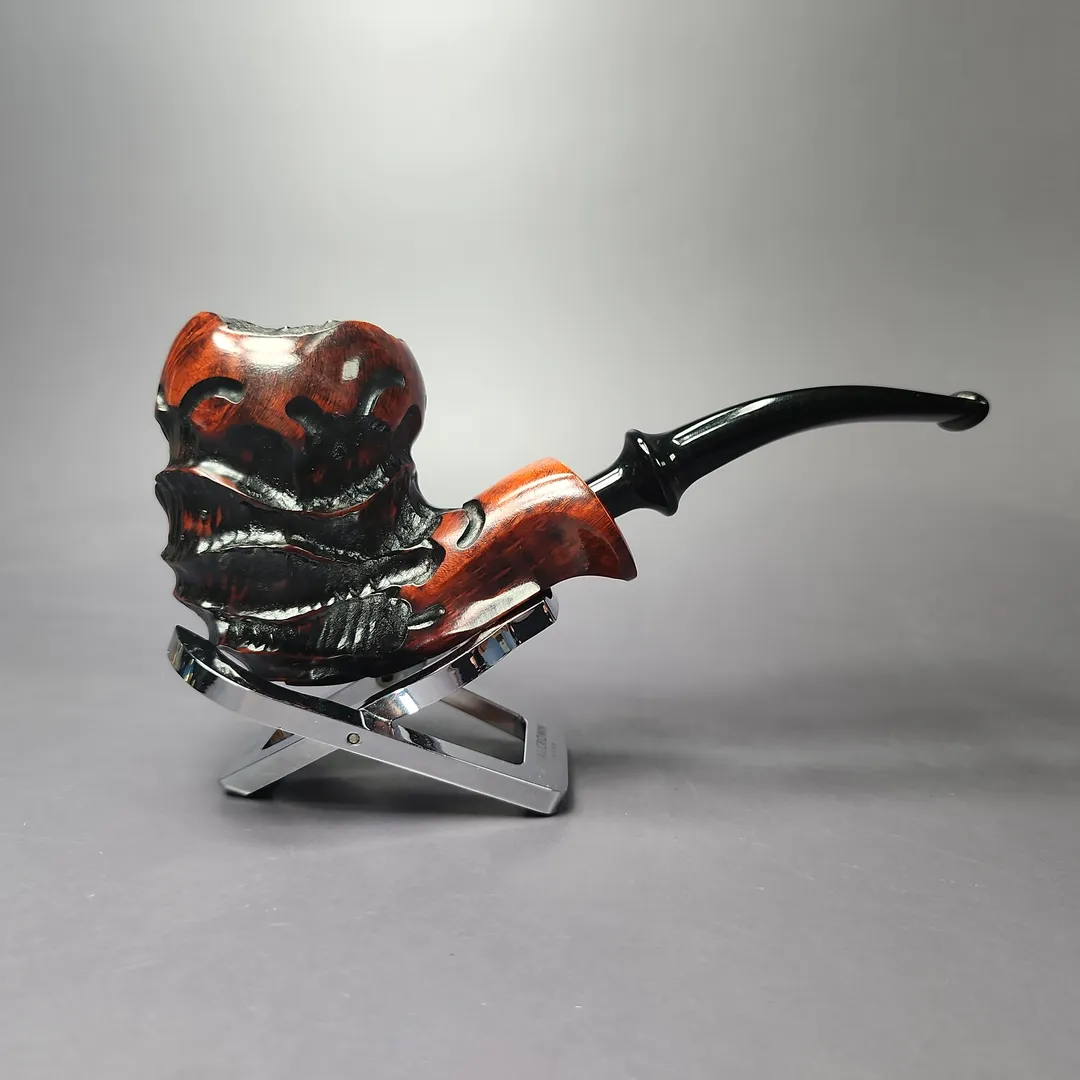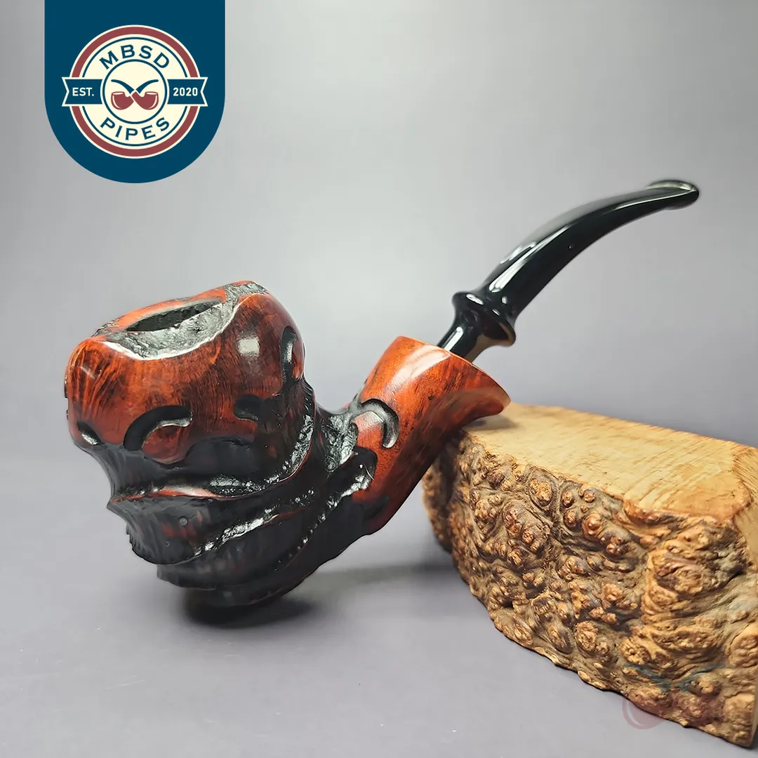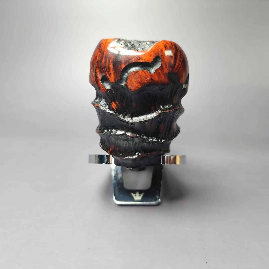 Freehand pipes are generally known for their rugged, naturalistic aesthetic. Erik Nording’s Abstract series of freehands aims to push that even further. Employing a mixed finish and a combination different rustication styles, these pipes given an even more distinctive depth and freedom of form. The pipes are then treated with a contrast stain that accentuates the remaining smooth sections of the briar.