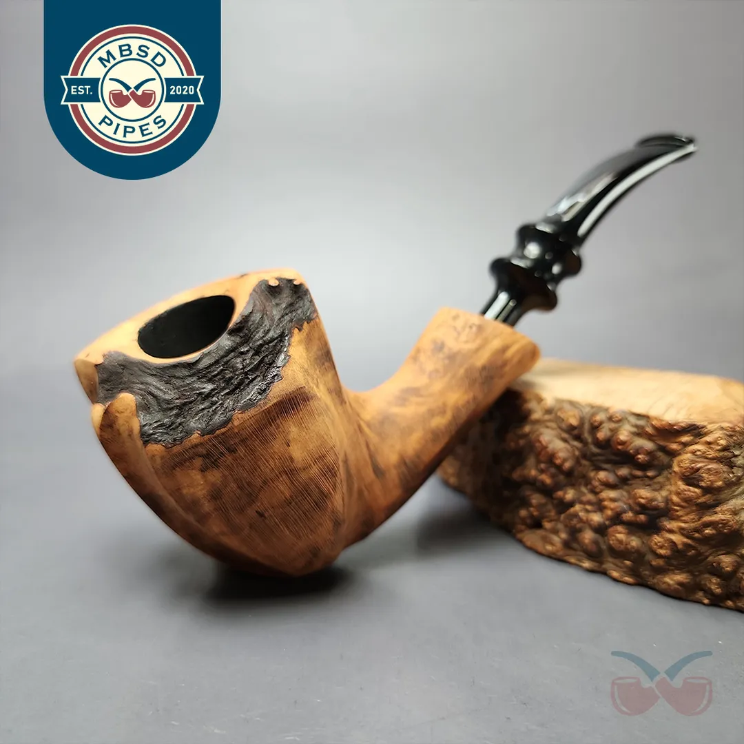While Erik Nording’s freehands come in a vast variety of finishes, the Grain series is reserved for smooth pipes with excellent briar patterning. The Black Grain is one of several lines within the Grain series, featuring a relatively light and natural, smoky contrast finish.