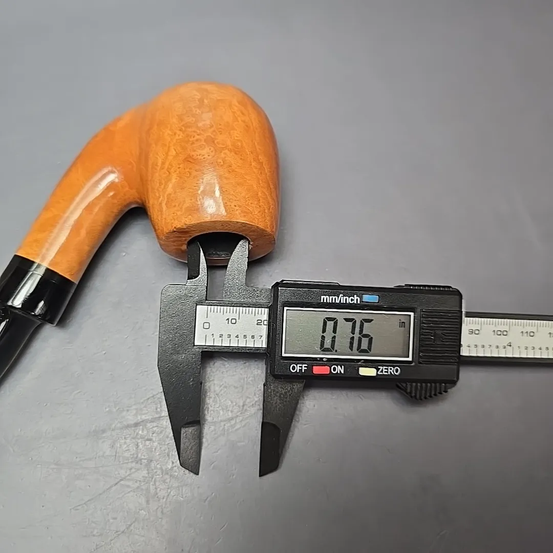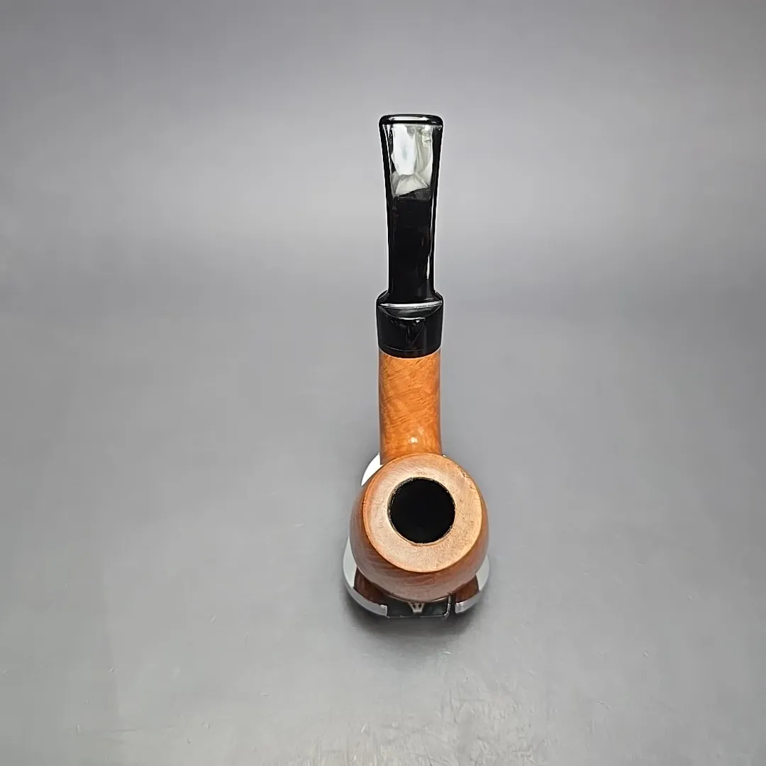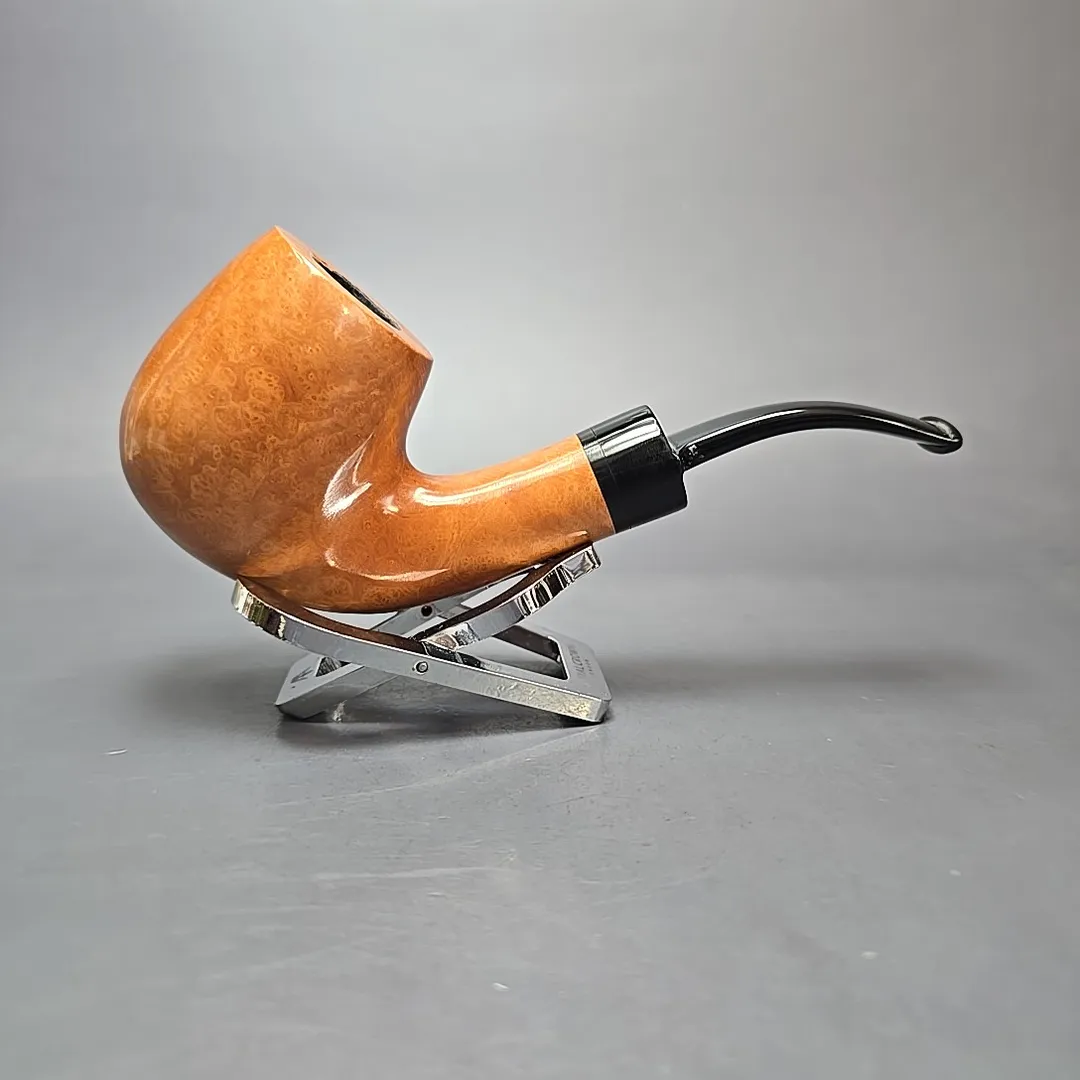 Though Nording’s career has been defined both by his pioneering of the “Danish fancy” freehand genre and by his creation of bold, modernist Scandinavian designs, a closer look at his portfolio over the last six decades reveals a profound versatility to his approach. From billiards to horns, to minimalist pokers, to shapes that, as of yet, don’t have a name, he’s done it all. I’ve even seen a Nording rendition of the iconic Dunhill LC, come to think of it. It should come as no surprise, then, that Erik would also explore the “house pipe” genre, i.e., a large, easy sipper with a chamber capacity that may well provide a couple of hours of enjoyment if smoked at a leisurely pace, and with a flake, coin, or plug cut. The Giant Classic is exactly that, taking the form of a very large, full-bent billiard. This one comes from the highest grade in that line, the “A,” being dressed in a light, natural finish that lets the bird’s-eye briar underneath speak for itself.