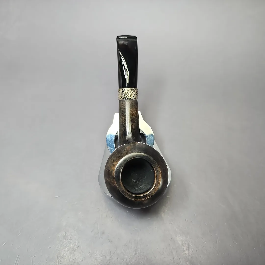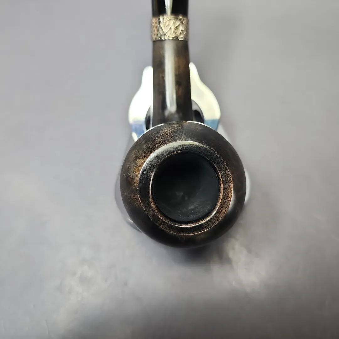 Erik Nording’s career is often defined by both by his pioneering of the “Danish fancy” freehand genre and by his creation of bold, modernist Scandinavian designs. But if we examine his portfolio over the decades a little more closely, we find a profound versatility to his approach. From billiards to horns, to minimalist pokers, to shapes that, as of yet, don’t have a name, he’s done it all. I’ve even seen a Nording rendition of the iconic Dunhill LC, come to think of it. This one, on the other hand, I hadn’t seen before at all, and had to go digging to find out what it might be (which wasn’t easy, as most of the listings I found dead links due to the pipes all being sold out). Turns out this pipe is from a relatively recent Nording line, the “Silver Classic,” intended to be, per Nording, “a tribute to the traditional elegant and well balanced smoking pipes designed in the early days of pipe smoking.” I’d say that’s true, but for me it also evokes the early days of post-war Danish pipe making, where pioneers such as Poul Rasmussen, Emil Chonowitsch, and Sven Knudsen were creating neo-traditional shapes with more subtle Scandinavian inflections than what came later. This one is a lovely hybrid, with a very distinctive grey-brown contrast stain and silver collar. So, yes, I’d call it classic, but still a very Danish classic.