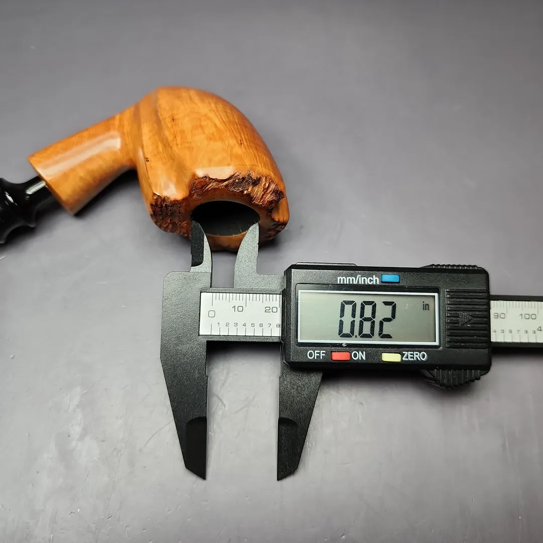 This pipe is completely unsmoked, with an original bowl coating. There’s a couple of light scratches on the left side of the bowl, but nothing major. It comes with its original sleeve.
