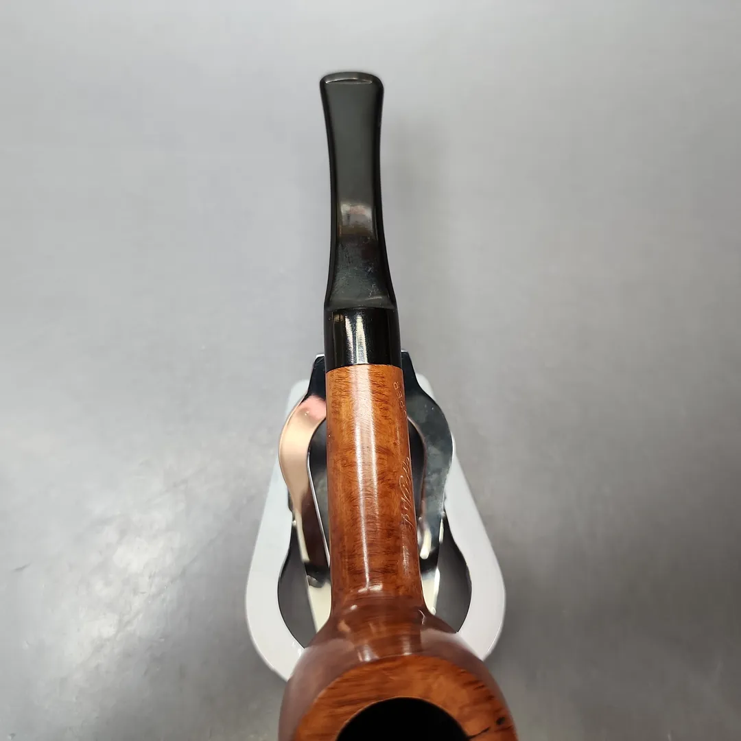 P. Viou pipes were originally made by Paul Viou, an early French artisan working around the early to mid-20th century. The P. Viou trademark was, however, later acquired by various major French pipe companies, including Vuillard and Genod. As with a couple of other P. Vious that came in recently I have a feeling this one will be from Genod, in whose safe hands the make has been for a while now (the Genod workshop, after all, has about 150 years of accumulated expertise in pipe making). This one’s a very traditional saddle billiard—nicely grained, modestly finished, ample in chamber, and wonderfully lightweight.