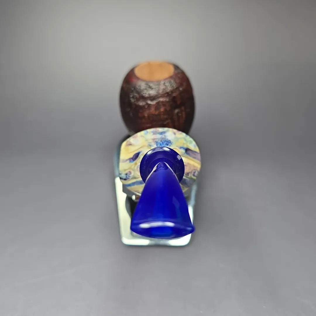 As already mentioned, Tim Beaumont’s been on a real Danish kick recently, with this example being among my favorite of his latest batch of handmade pipes. A stout, bent apple shape in the vein of Jens Tao Nielsen or Peder Jeppesen, the bowl transitions into a distinctive, faceted shank, capped and stemmed by an even more distinctive combination of fossilized mammoth tooth and custom-cast, blue artisan resin. The latter is a relatively contemporary creation conceived specifically for artisan pipes, which possesses a similar comfortability to ebonite, as well as a resistance to wear and oxidation comparable to Lucite. The former, on the other hand, belongs to a land—as they say—far beyond time.