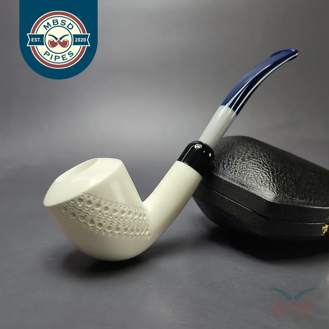 Patrial Latice Dublin w/ Blue Stem & Case Estate Block Meerschaum Pipe, Unsmoked