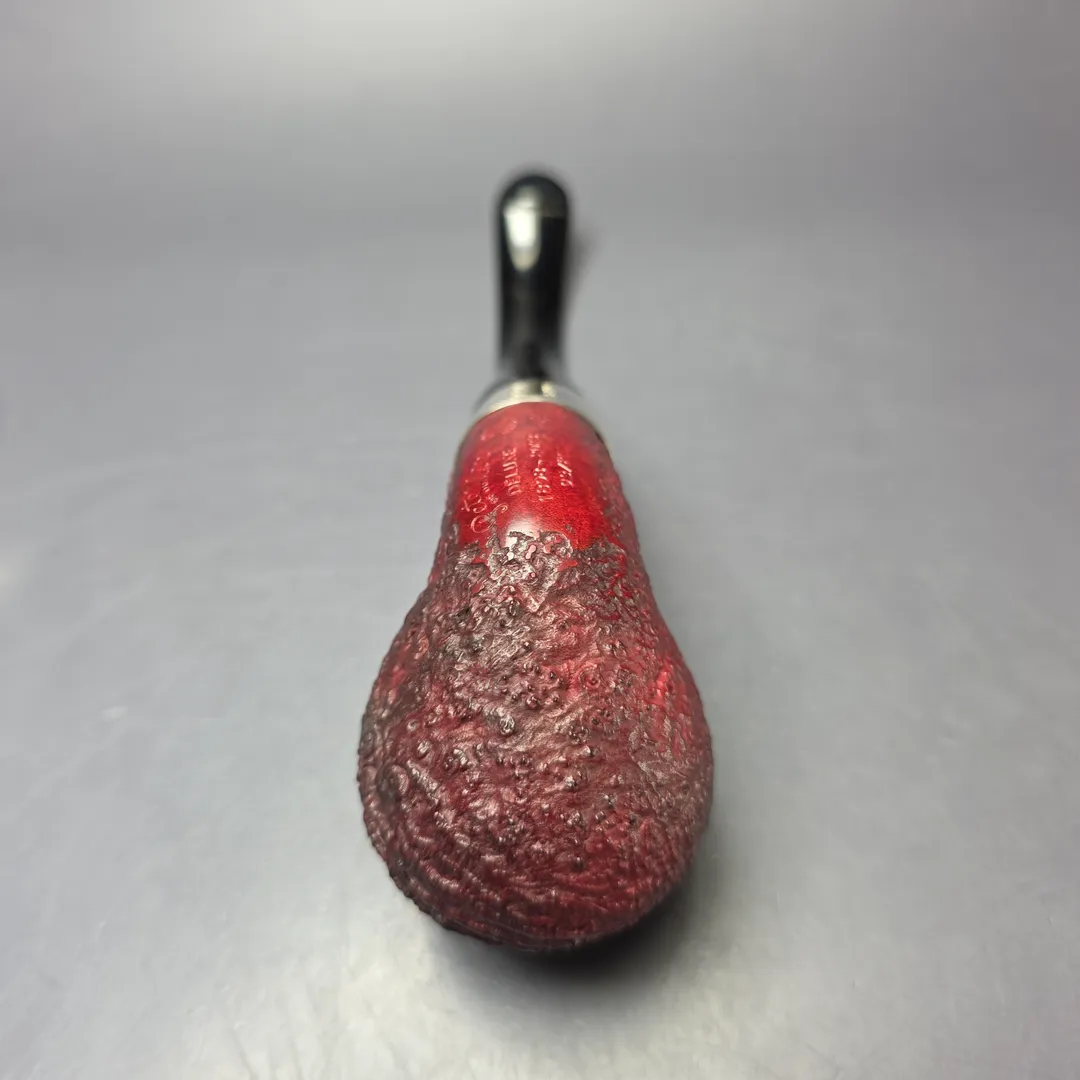 The Peterson System Pipe has been in continuous production ever since it was patented, managing to survive the entirety of the 20th century, and—thus far—a quarter of the way into the 21st. When the time came to commemorate the System Pipe, Peterson released a series of limited edition pipes from the various ranges within which the System is currently incorporated. At the higher-end of this series was the Deluxe System Anniversary line, distinguished by its sterling silver army mounts, “space-fitting” tenons, and aluminum condensers. And, if one wanted something really special to mark the occasion, a small number of Deluxe System Anniversary pipes were finished in the Rua contrast sandblast. A relatively recent addition to Peterson’s portfolio, the Rua employs a form of labor-intensive sandblasting and contrast staining most typically associated with artisan pipes. As a result, Peterson produces very few Rua pipes in a given year, and the finish has thus far been reserved for more limited or occasional releases, such as the 125th Anniversary of the Peterson System Pipe. In total, just 200 Deluxe System Rua pipes were made for the 125th Anniversary series, with this particular pipe being one of them.