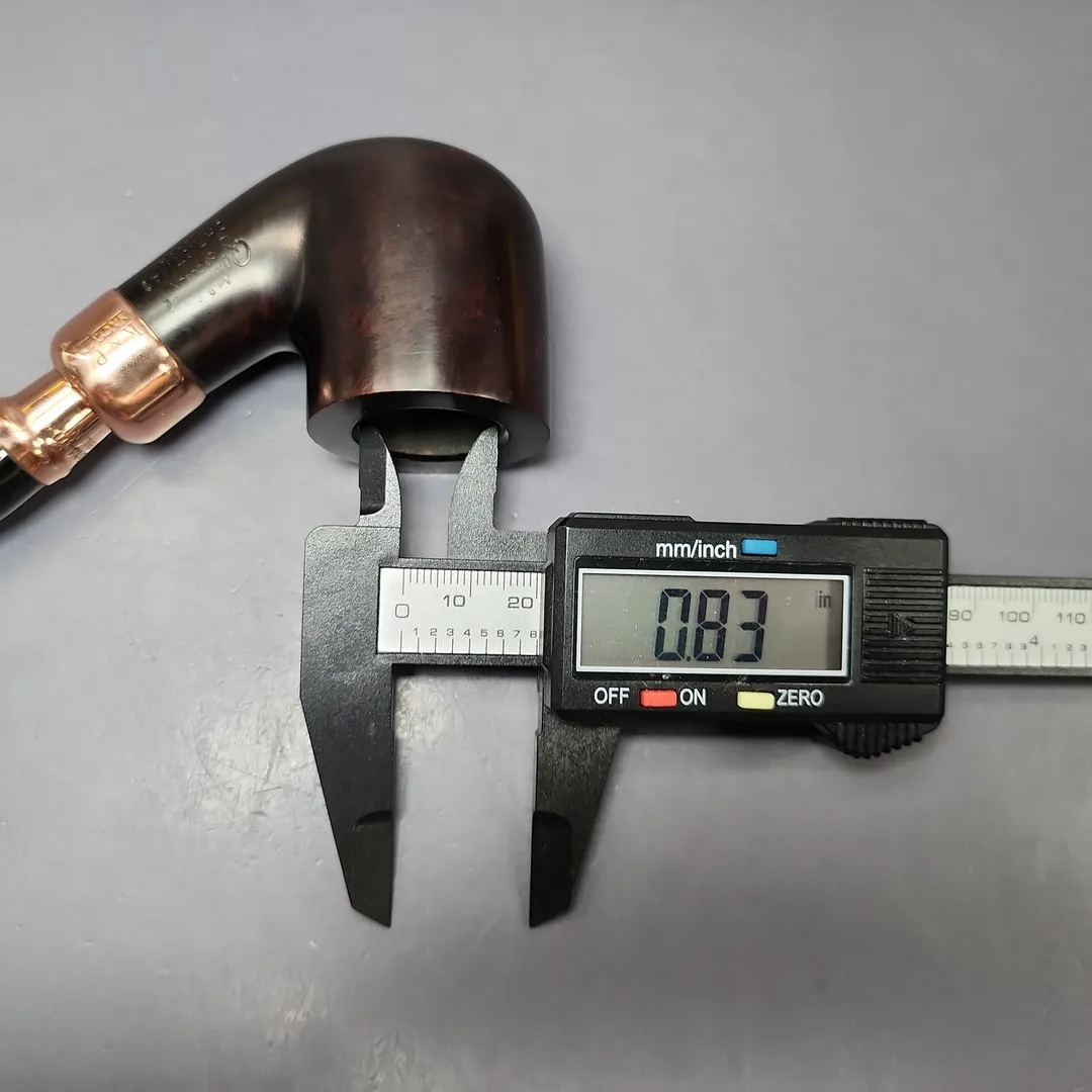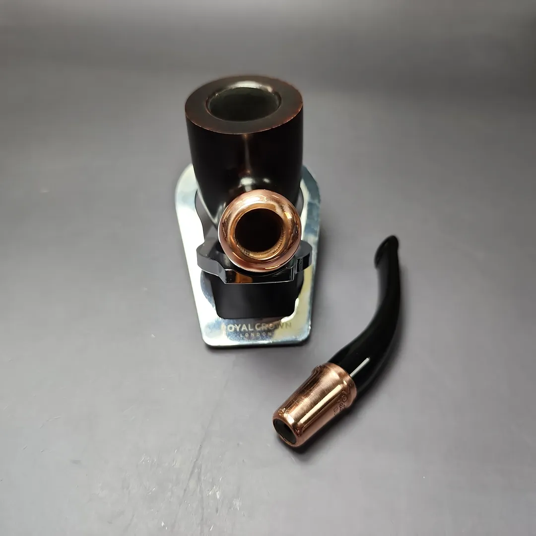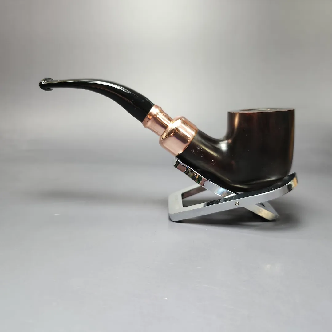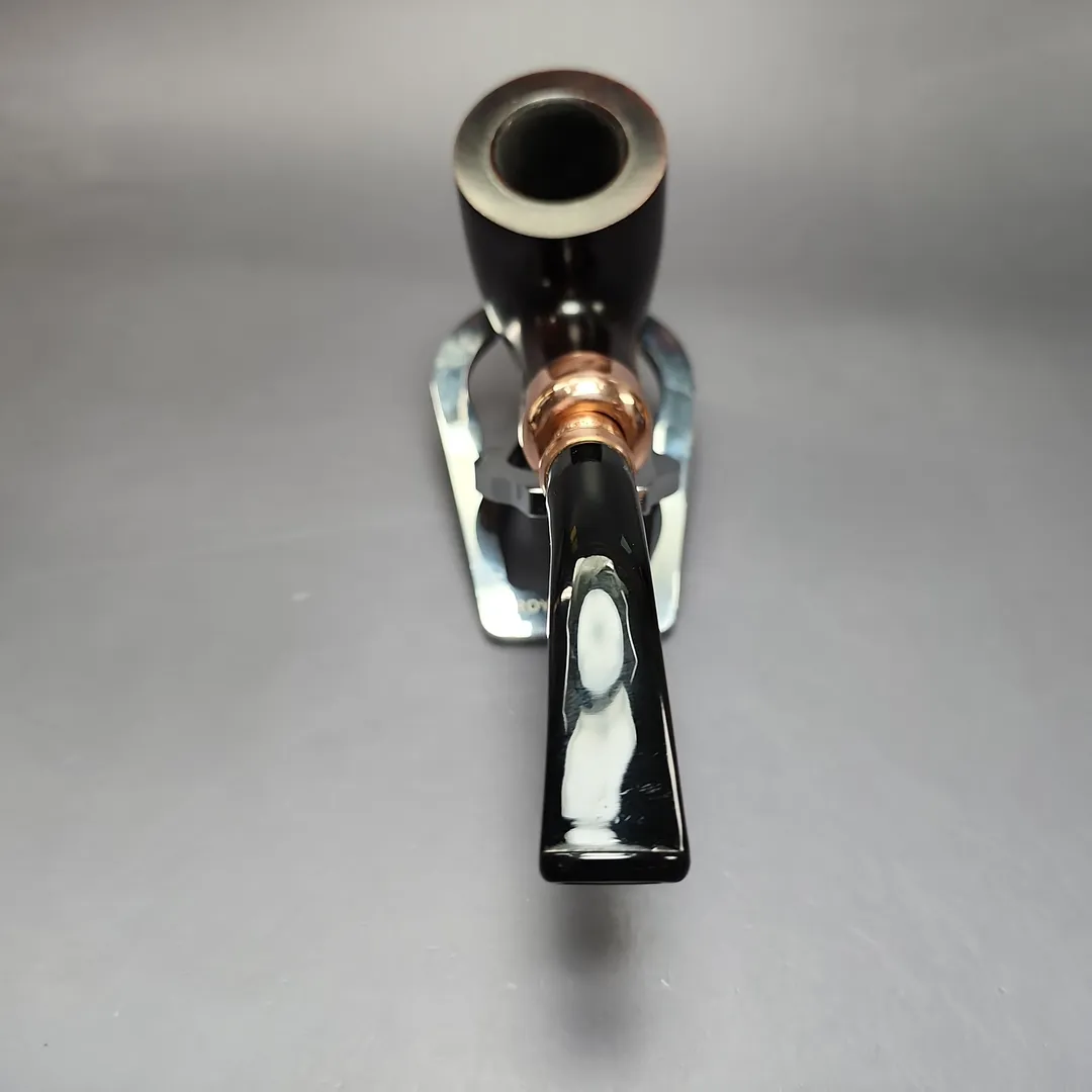 Since 2009, Peterson has released an annual, limited edition, “Christmas Pipe,” one separate in design from their Pipe of the Year and other seasonal offerings. I’ve spoken before at lngth about my fondness for the 2022 and 2024 Peterson Christmas Pipes; the reserved color palette, the classic shapes, the unique copper mounts. They were simply lovely, and it’s a shame that Peterson hasn’t released anything quite like them since. Thank goodness for estates, at least. This one, from 2022, features a copper spigot mount (some featured army mounts, while others had full spigot mounts) and is dressed in Peterson’s house “Heritage,” finish, a modest, though warm, garb, fittingly evocative of roasted chestnuts.