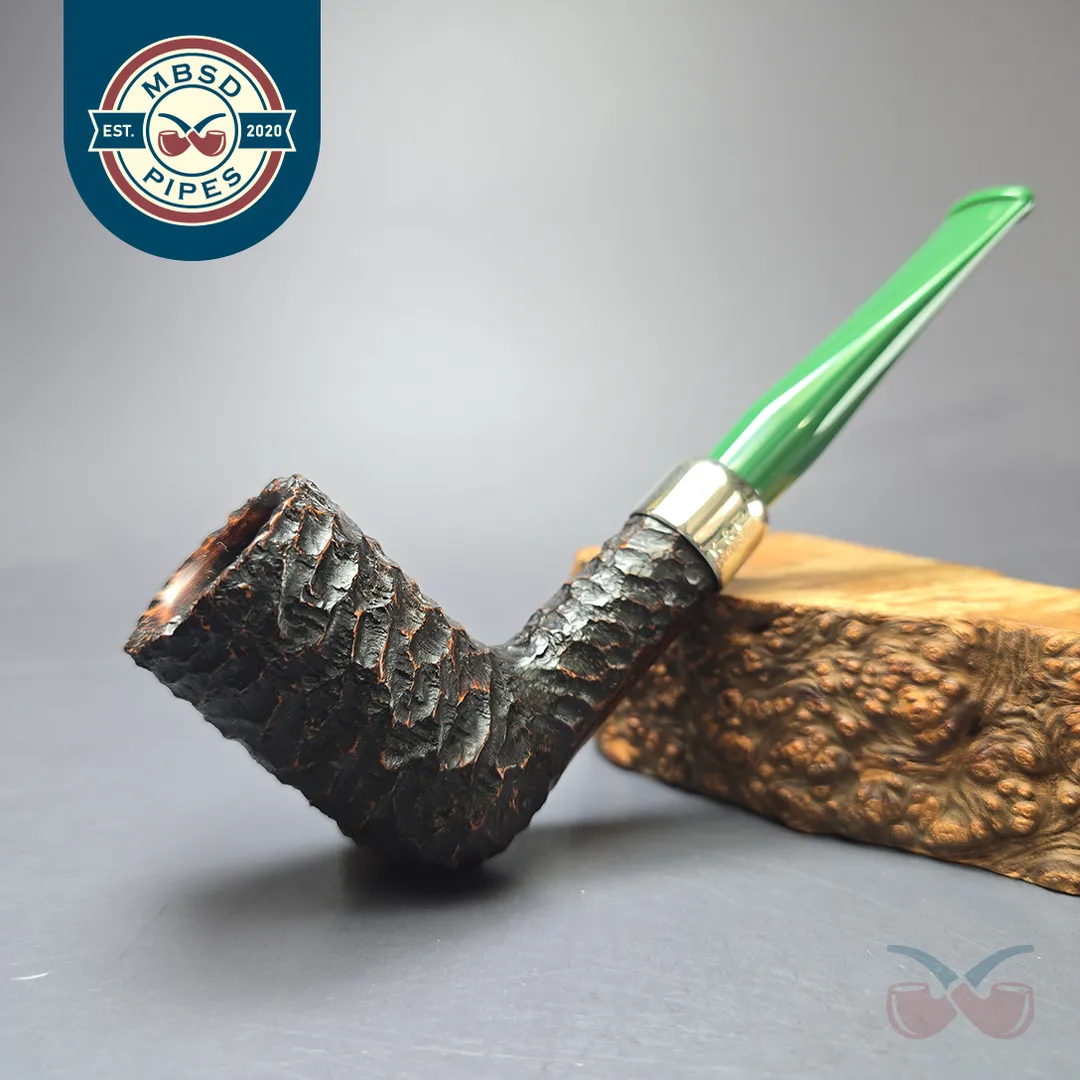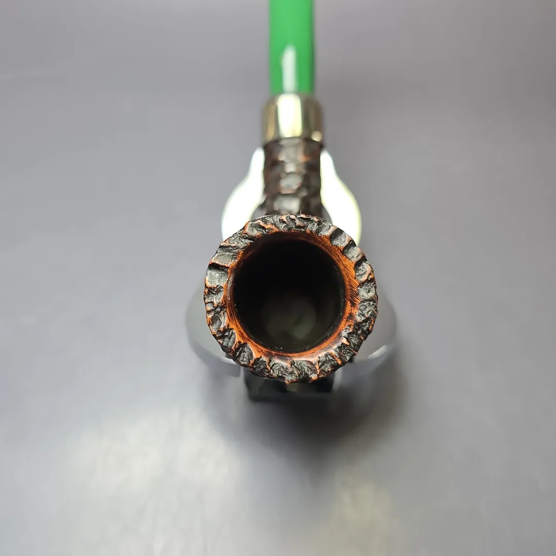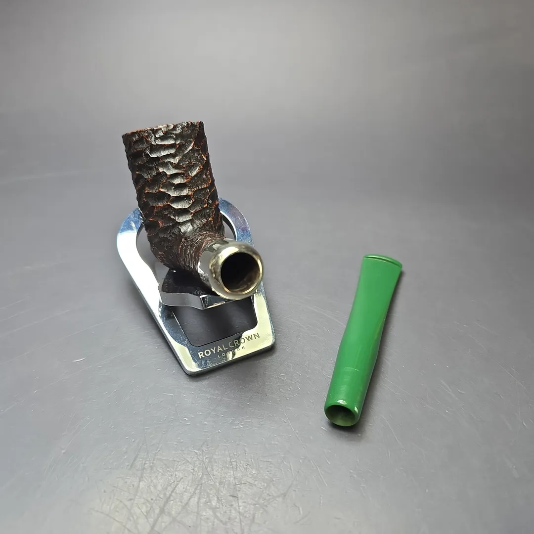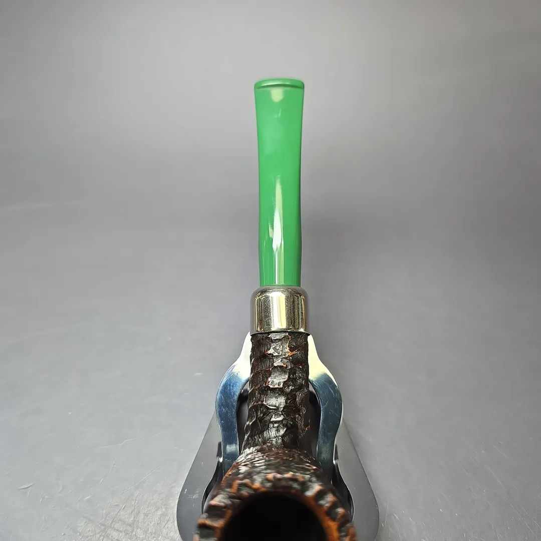 It is only natural that the great Irish pipe company Peterson should honor Ireland’s patron saint, which they have done each year since 1998. These St Patrick’s Day pipes are always a limited edition make and each is distinct from the last. They are, as a consequence, collectors’ items, as well as good smokers. The 2022 release was a little different from the norm, as it matched Peterson’s house rustication with nickel army mounts and thematically appropriate, green acrylic stems (which, on a personal note, I enjoyed very much, and still do). This particular 2022 St Patrick’s is a real gem, being not only a pipe from that distinct release, but an example of Peterson’s rare, D20 stacked billiard shape. As with other “D shapes,” the D20 was originally designed for the Danish market, with designs that took inspiration from the world of Scandinavian pipes. And, as with the other D shapes, while the D20 does make appearances every now and then, it is far less common to see than the make’s standard shapes.