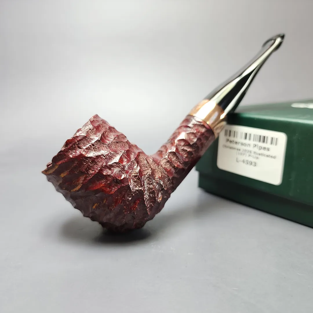 Since 2009, Peterson has released an annual, limited edition, “Christmas Pipe,” one separate in design from their Pipe of the Year and other seasonal offerings. For the 2025 release, Peterson appears to have taken two other excellent recent iterations, the 2023 and 2024 Christmas Pipes, and merged them into a design that is equal parts festive, tasteful, and classic. Combining the understated plum finish of the 2023 release with the copper mounts of the 2024 (and 2022) one, 2025’s Christmas Pipe was distinguished by a red and gold motif that gelled perfectly with the make’s house rustication and black vulcanite mouthpieces. The result was a pipe that feels especially suited for the holiday season, but also perfectly at home in any other time of the year.