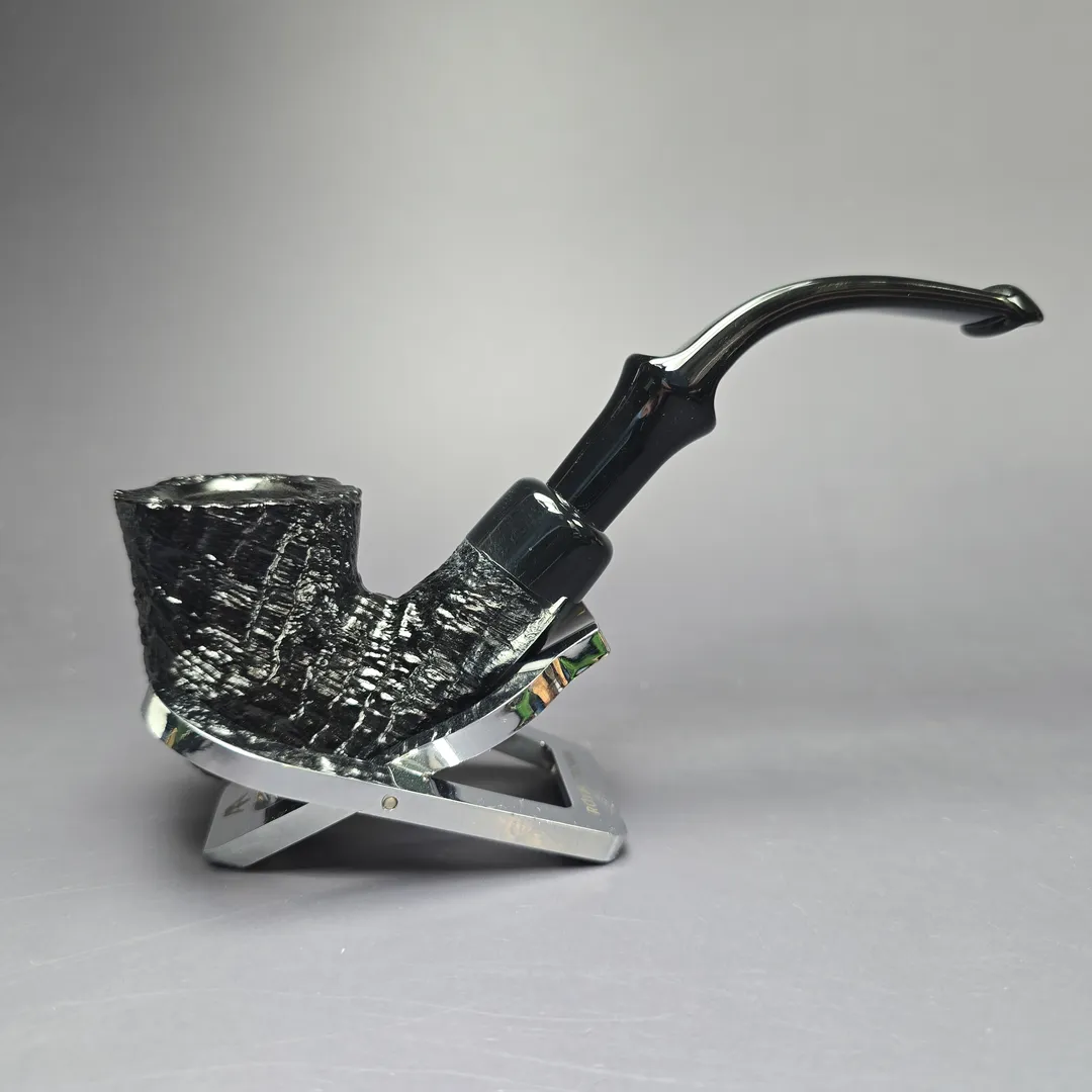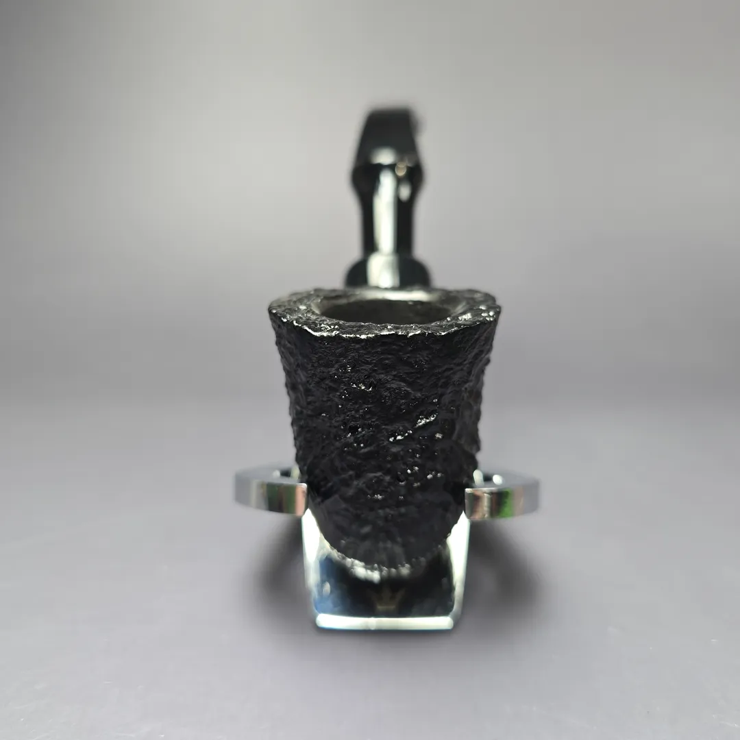 For 2025, Peterson has wholeheartedly embraced the spirit of the season, including its shorter days and longer nights. This year’s release takes the form of a classic, sandblasted Peterson System Pipe, available in a number of System shapes. Its distinction, however, lies in its uniform obsidian color palette, from the finishing of its bowl, to its acrylic army mount and P-lip stem. One can picture Peterson’s director and designer of this year’s Halloween Pipe, Glen Whelan, listening to The Rolling Stones as he put pencil to paper. How does that song go again? “I see a red Pete and I want it painted black…”?