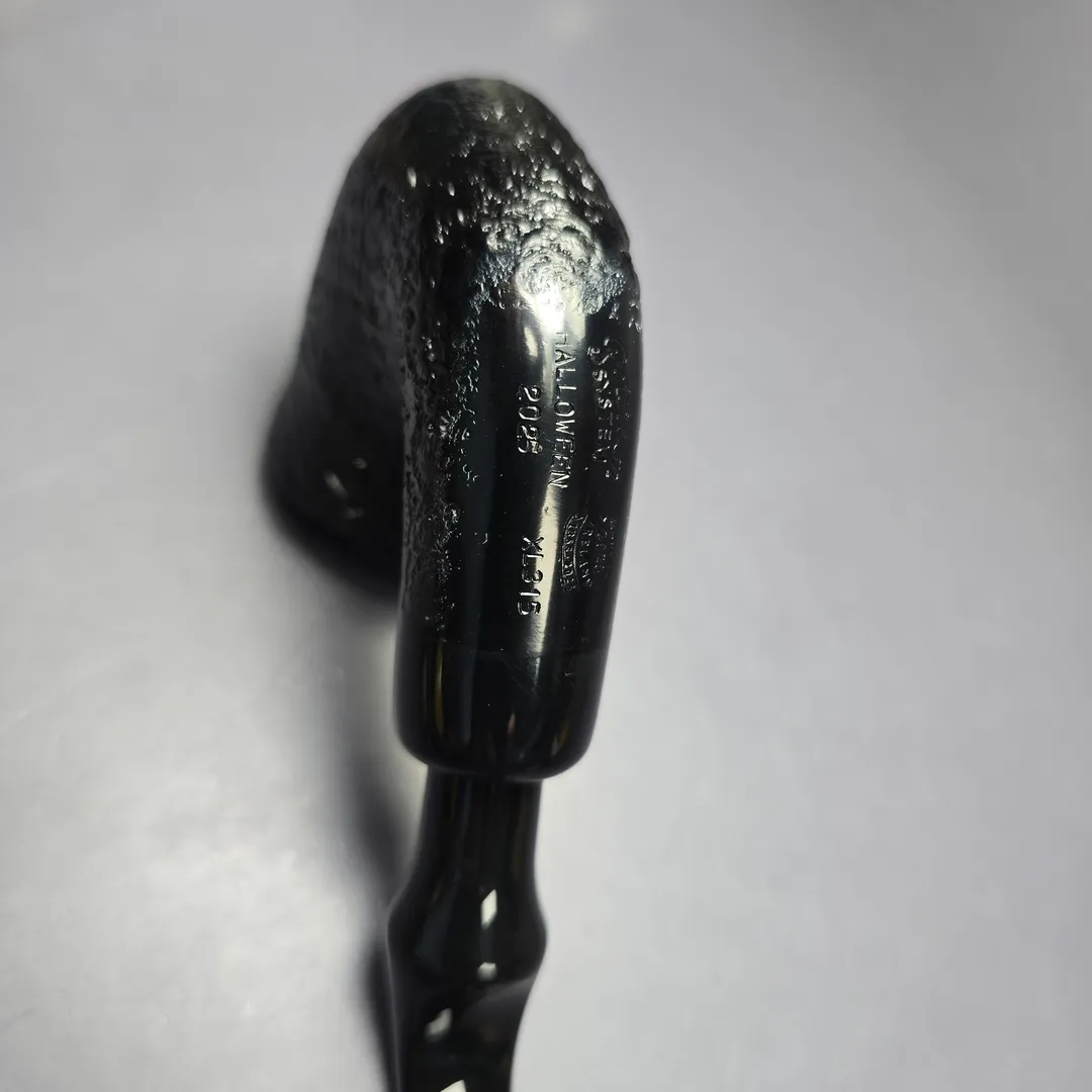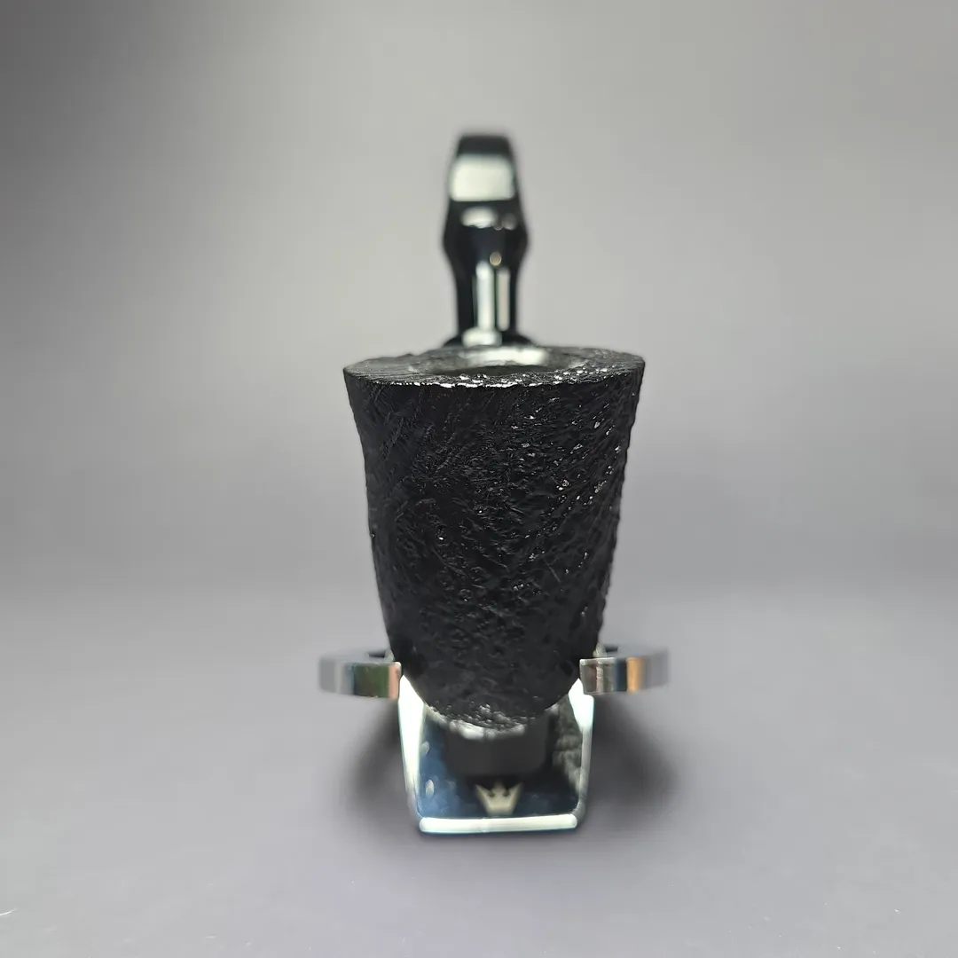 For 2025, Peterson has wholeheartedly embraced the spirit of the season, including its shorter days and longer nights. This year’s release takes the form of a classic, sandblasted Peterson System Pipe, available in a number of System shapes. Its distinction, however, lies in its uniform obsidian color palette, from the finishing of its bowl, to its acrylic army mount and P-lip stem. One can picture Peterson’s director and designer of this year’s Halloween Pipe, Glen Whelan, listening to The Rolling Stones as he put pencil to paper. How does that song go again? “I see a red Pete and I want it painted black…”?