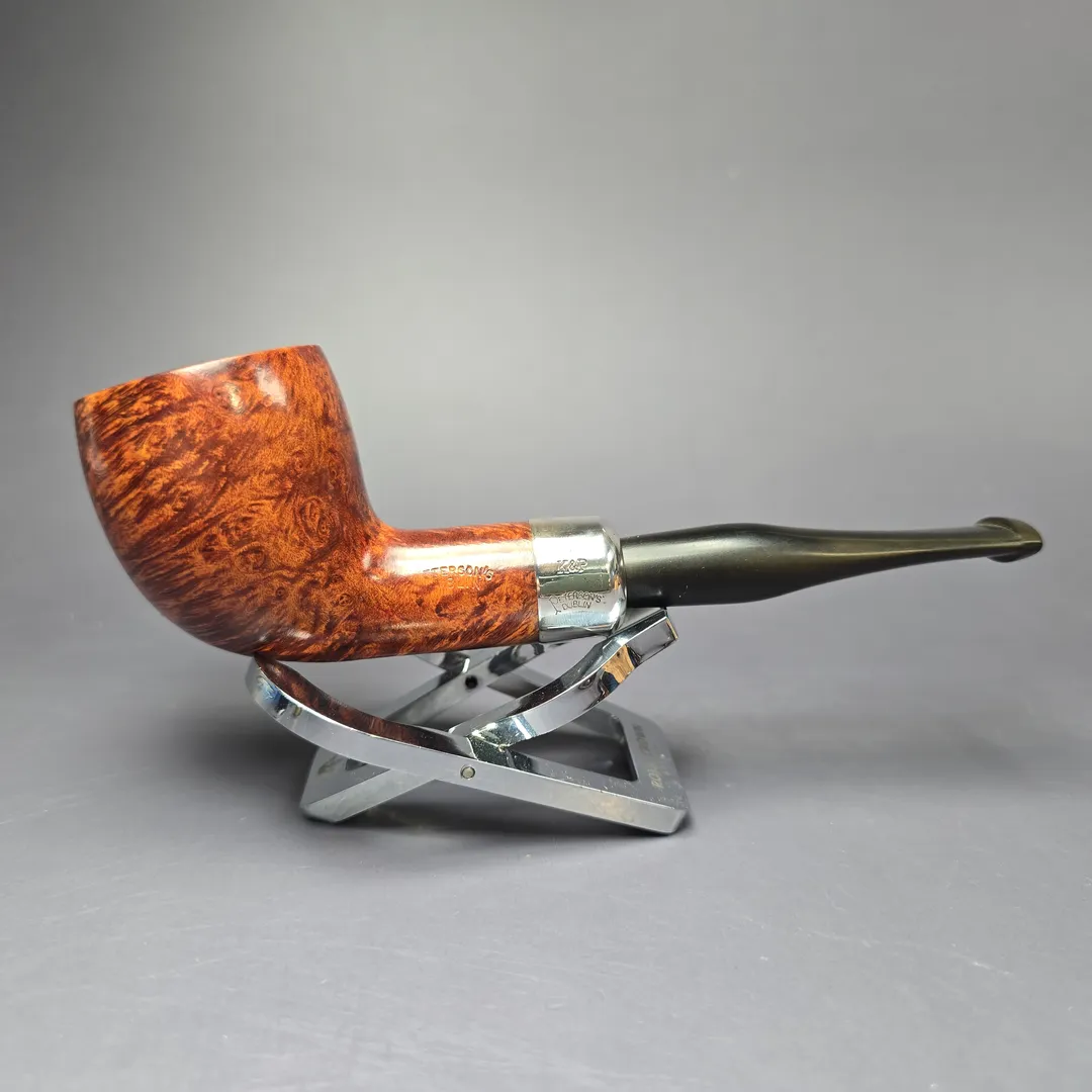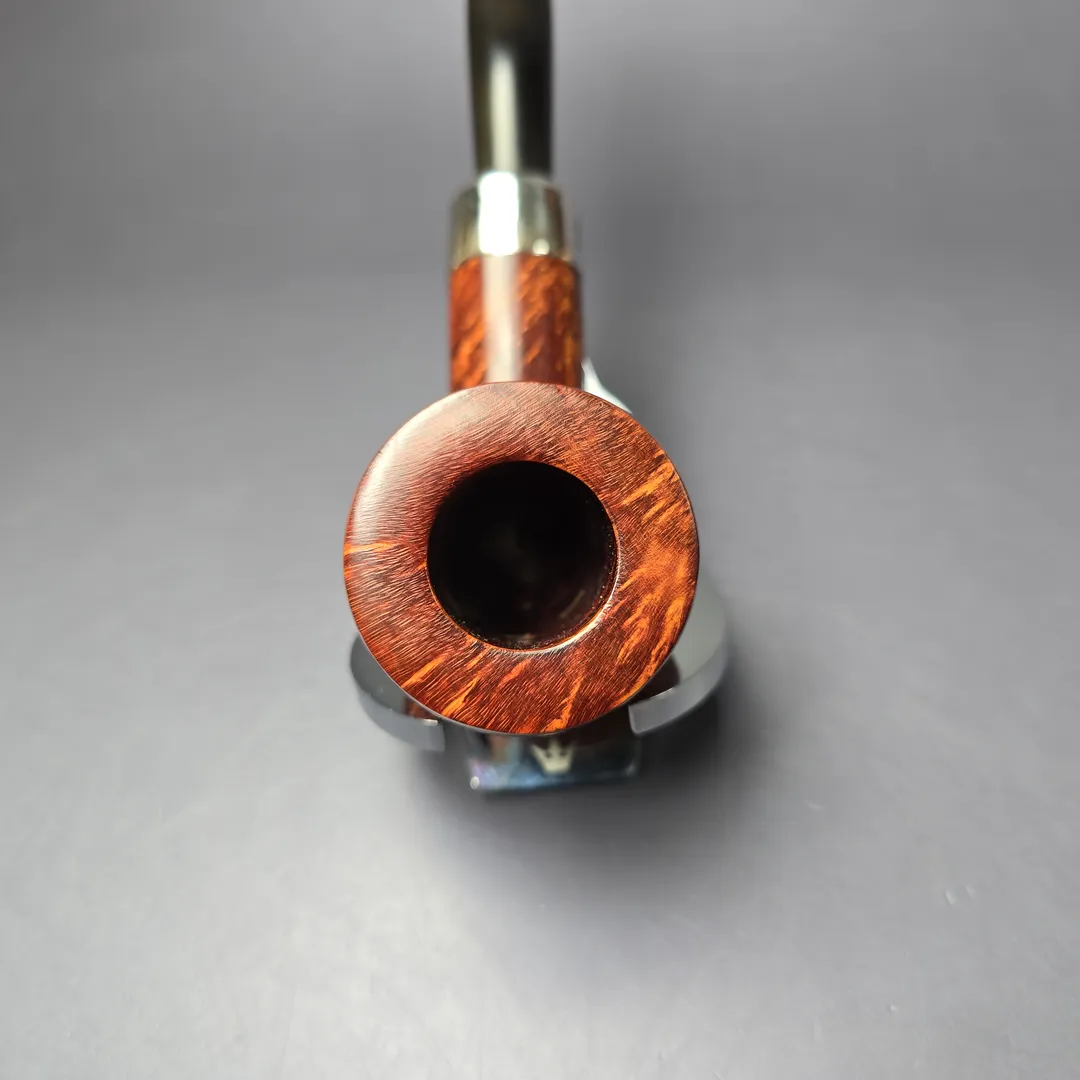 This pipe is completely unsmoked. Some minor residual oxidation on the pipe’s vulcanite stem, though nothing major. This pipe comes with its original sleeve. It is chambered to allow for the use of 9mm filters if desired.
