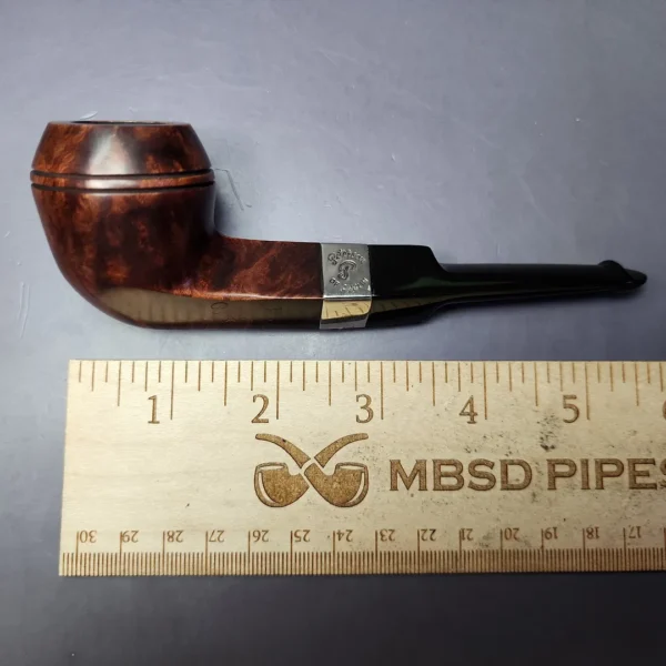 Like the other Nickel Mounted Arans listed recently, the light brown stain, along with the nomenclature, leads me to believe this to be a slightly older Peterson, back from what Mark Irwin tends to call the “Dublin era” (1991-2018), and which was prior to the Laudisi acquisition (as a side note, the person who traded these in seemed to really love his Arans). I’ve nothing against Laudisi-era Petersons, especially since they’ve put out some of the best Christmas Pipe and Pipe of the Year models in a very long time, but these older Arans really are beautiful pipes—especially considering that they are, ostensibly, part of Peterson’s more affordable lines. This one is rendered in one of my personal favorite Peterson shapes, the 150 bulldog, with its stout bowl lit up by flame grain, further accentuated by the pipe’s nickel collar and black vulcanite stem.