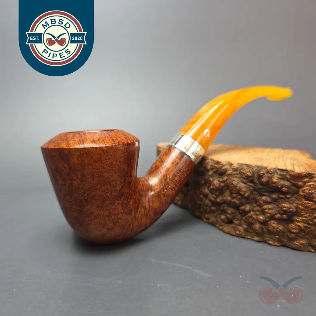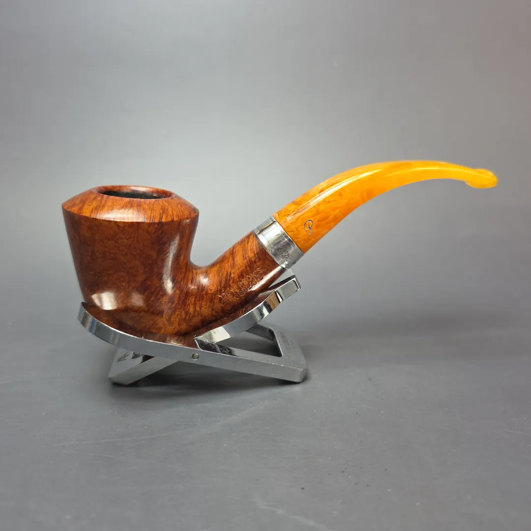Debuting in 2003, Peterson’s Rosslare line was designed in collaboration with Italian pipe distributor Mario Lubinski. It was a relatively high-end line, with a silver collar (originally nickel, but in this iteration, sterling) and an acrylic stem meant to evoke the amber used by Peterson’s early pipes. For the smooth variants of the Rosslare, only especially well grained stummels were used, belonging to the top 5% of Peterson’s stock. I’m not sure if the smooth variants are sold anymore. If they are, they are very difficult to find.