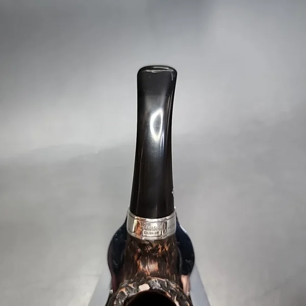 Peterson’s Short series is one of what could be called “nosewarmer” sized pipes, but as Peterson itself explains, the idea behind them is more to do with capturing the aesthetic of some of the make’s earliest (i.e., turn of the 20th century) designs. Back then, pipes were smaller, and this gave them a distinct look both when on a stand or the mantelpiece, or when they were being smoked. With that being said, just like nosewarmer pipes from other makes, they are eminently pocket-friendly, portable, and lightweight pipes. This one is a bent billiard, rusticated in the “weathered stone” style seen on other Peterson series, such as the Aran.