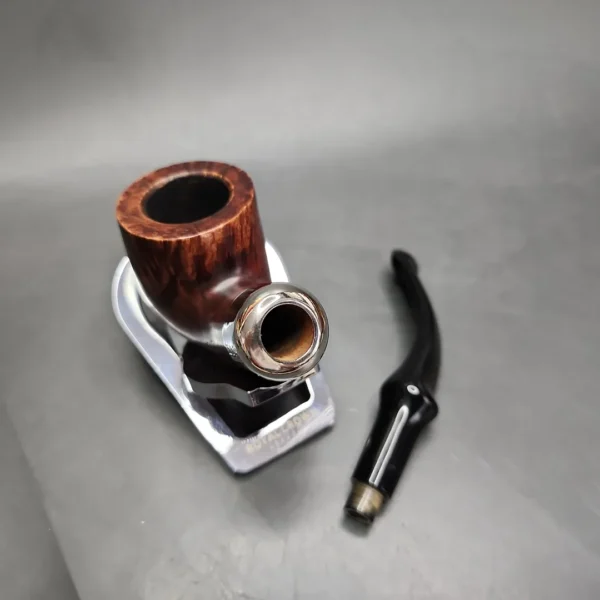 Speaking of Peterson’s System, this pipe is an example of exactly that. What looks like a simple, bent pot, hides within its shank a reservoir for collecting moisture produced during the smoke. This is coupled with a ‘P-lip’ stem that channels the smoke up inside one’s mouth so as to cool it and reduce tongue bite.