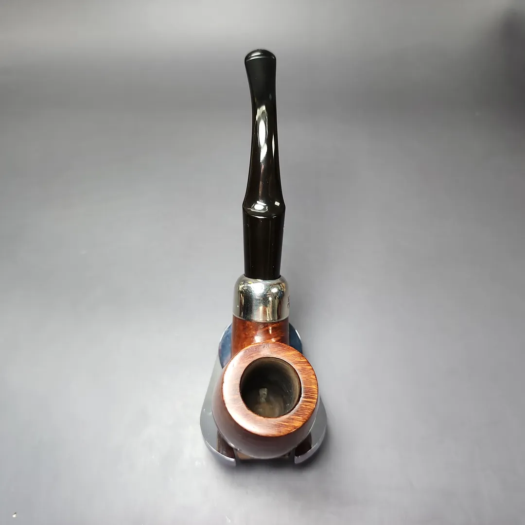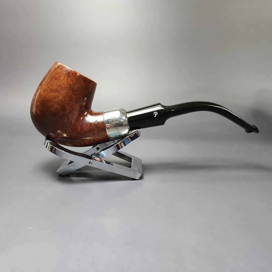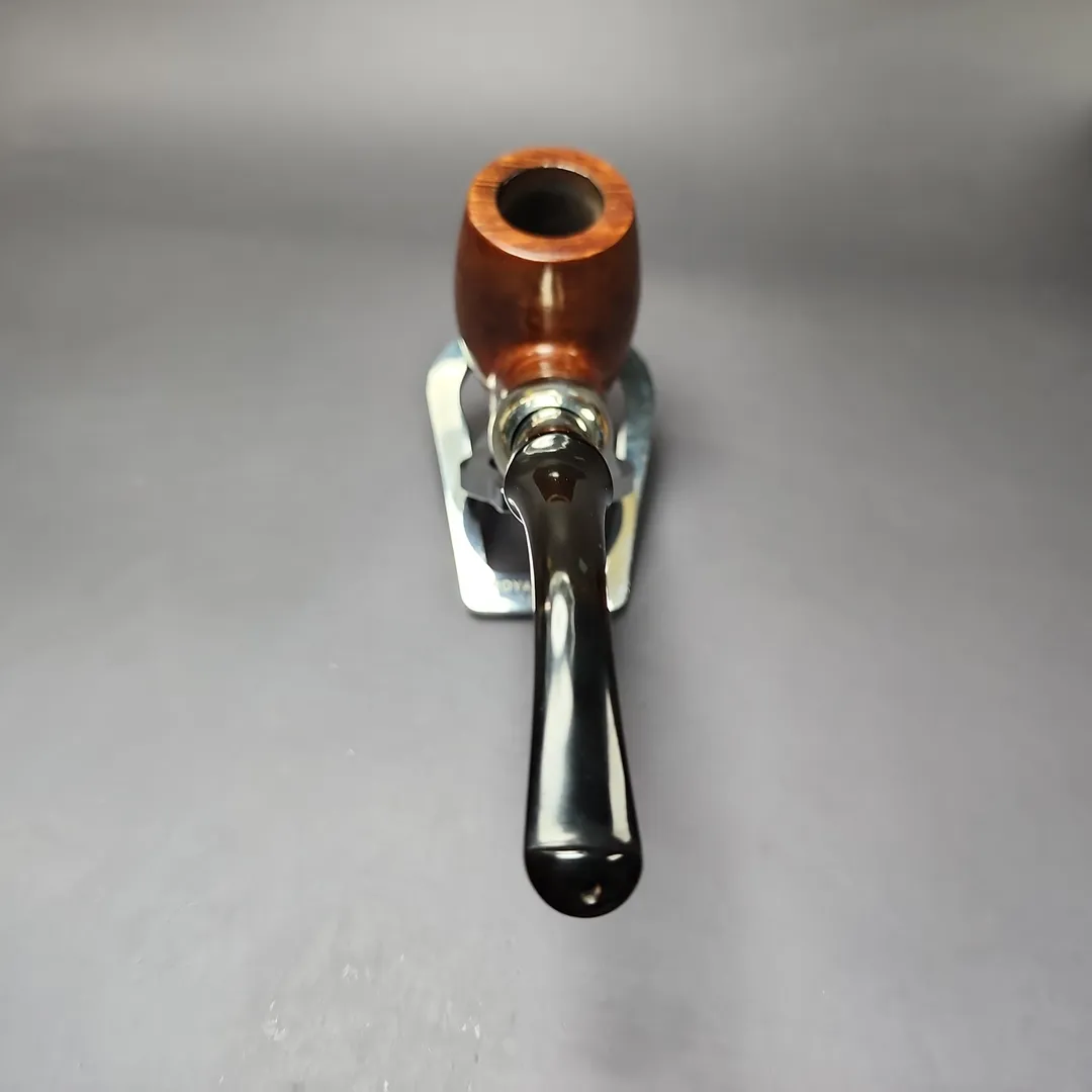 Speaking of Peterson’s System, this pipe is an example of exactly that. What looks like a simple, bent billiard hides within its shank a reservoir for collecting moisture produced during the smoke. This one is rendered in Peterson’s shape XL307, one of the larger designs offered in the System Standard line. Based on the finish and the Peterson “P” logo, it also looks to be a little older than contemporary renditions, with the former allowing for a clearer view of the bird’s-eye grain of the bowl.