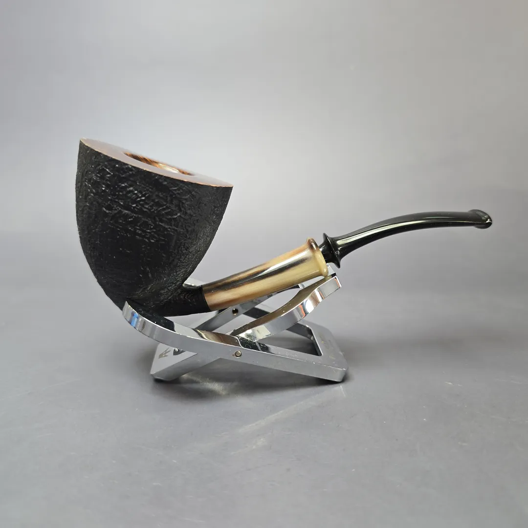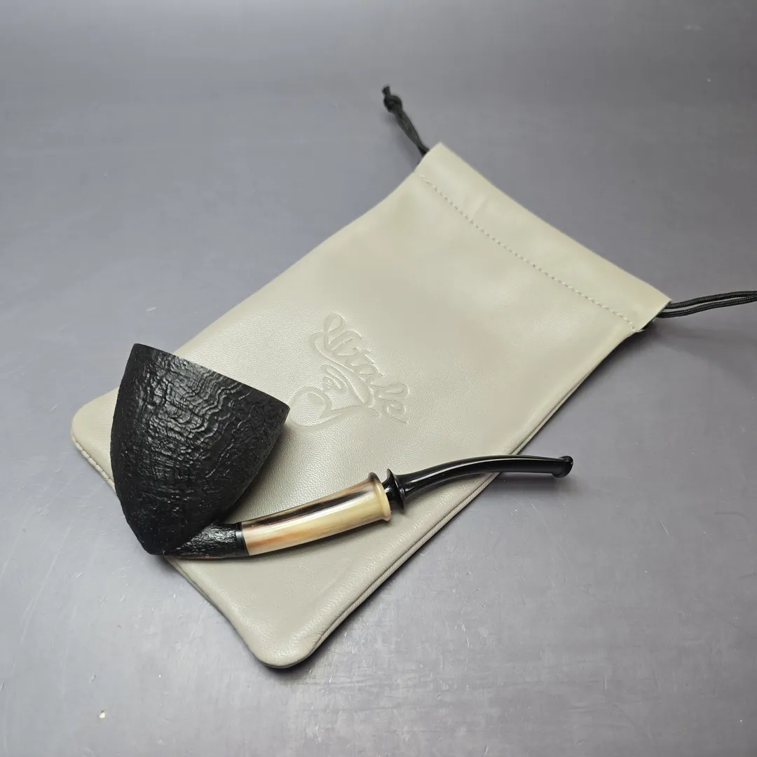 Piero Vitale Partially Sandblasted Dublin Pickaxe w/ Horn (2 Star) Handmade Briar Pipe, New