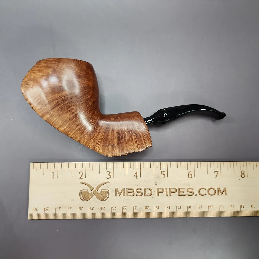 This particular Croci is from Paolo & Gianni’s more freeform “Artistica” collection, a name which seems highly appropriate. Moving away from the typical styles of Italian handmades, it gestures toward an altogether different modern tradition: the Danish freehand. Perhaps it is an homage to those rare pipes from figures such as Preben Holm and Erik Nording, whose plateau was positioned at the base (as seen here), resulting in a highly distinct composition, even compared to other Danish fancies. Where the pipe does stick to its national heritage, however, is the choice of a light, blonde stain, which works wonders with the grain patterns underneath.