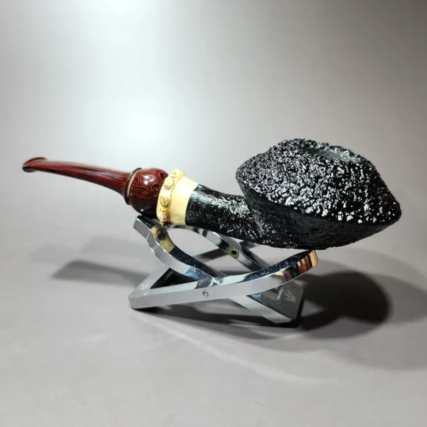 Those who are not wholly versed in the Scandinavian pipe-making tradition – both in its origins and its more recent history – may be wondering what on earth a “Swedish Bulldog” is. I will try to summarize as briefly as possible. One of the godfathers of the Scandinavian pipe-making tradition was a Swede named Bo Nordh. It has long been established consensus that Nordh was among the greatest pioneers in modern pipe-making history, and his innovative designs, such as the Ramses, the Elephant’s Foot, and the Nautilus, soon became the staples of artisan pipe-making that they are today. One design that took far longer to catch on, however, was Nordh’s distinct interpretation of traditional bulldog shapes. Thanks to the efforts of Swedish masters Sara and Love Geiger, Nordh’s design was rescued from time, finding new life among the contemporary handmade scene under the name “BoDog.” This pipe, from Tristan Lefebvre, is his third tribute both to Nordh and to Geiger, featuring the shape’s signature oversized, saucer-like bowl and conical shank. This rendition is dressed in Tristan’s signature Granite rustication, with the shank’s flare performed by a distinct bamboo accent.