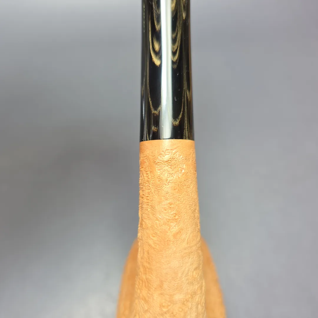 In the last couple of years, Tristan Lefebvre has become especially well known for his renditions of a very traditional, yet also very particular shape. The shape is commonly known as the “LC,” or the “Dunhill LC,” both on account of that being the shape code used by Dunhill back when the company manufactured such designs, and because, despite the fact that Dunhill was far from the only company to manufacture pipes in this vein, it’s Dunhill’s that have become the most memorable—one might call them the “Platonic form,” or “Platonic ideal” of that shape. While it is, at heart, a bent billiard, the LC bears several characteristics that separate it from similar shapes. Its bowl, for example, is exceptionally tall and decidedly plump, in a manner often likened to a goose egg; its shank and stem form a rather drastic, 3/4 bend, something similarly likened to a swan’s neck; and it is—typically—very large, especially for a shape that originated in early briars, which were, for the most part, notably small by today’s standards. Dunhill has not manufactured an LC in decades, but it has lived on nonetheless, not only as a “white whale” for Dunhill collectors, but also for makers and smokers of artisan pipes. The artisans themselves treat the shape as an object of study, not unlike a painter would the old masters, and as a means of testing their mettle, as it is highly labor-intensive and particularly challenging to get right (which no doubt factors into Dunhill’s decision to discontinue them, as well as the sheer variability of the shape back when it was in the make’s catalogs).