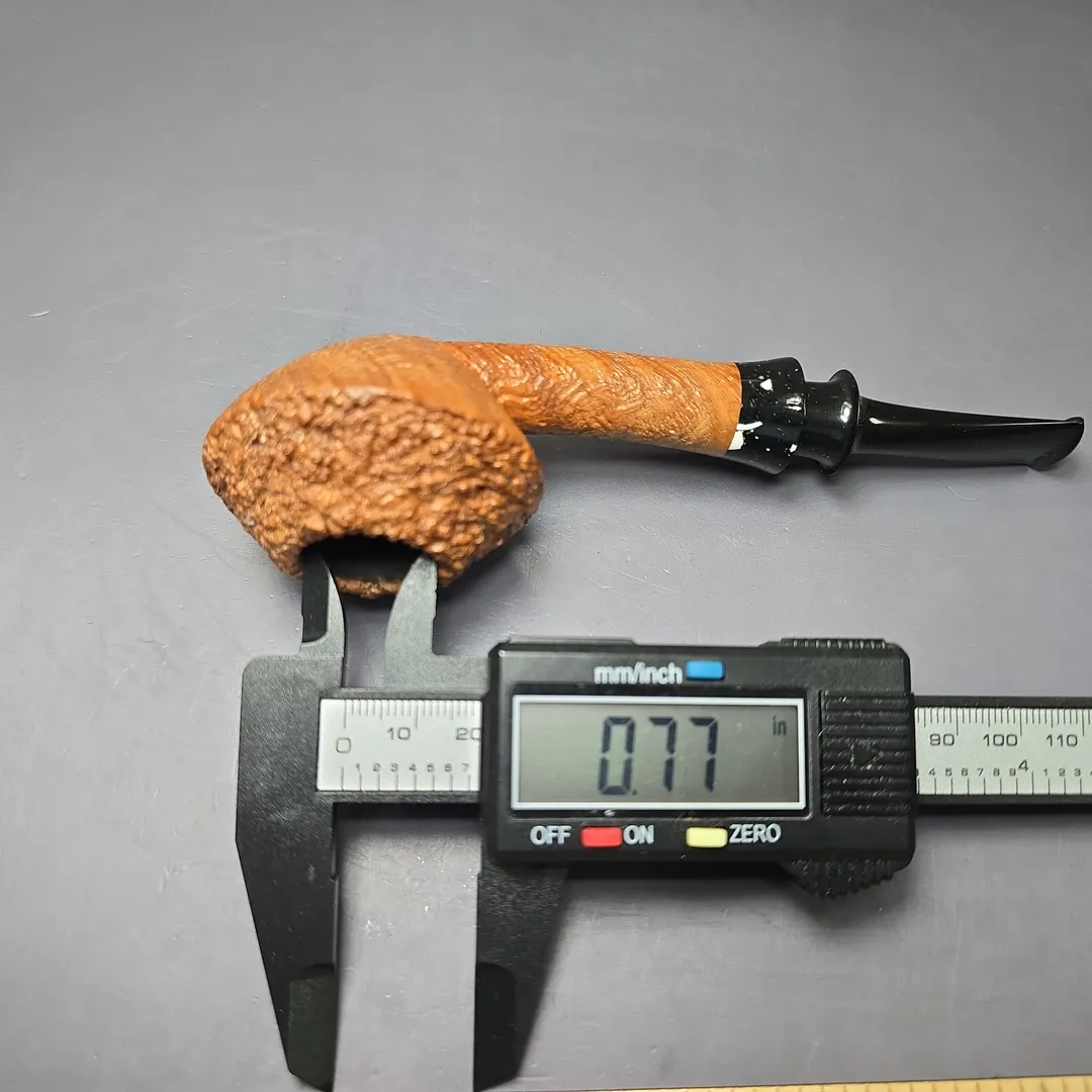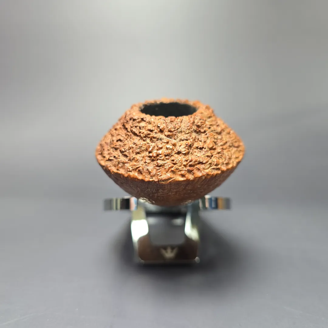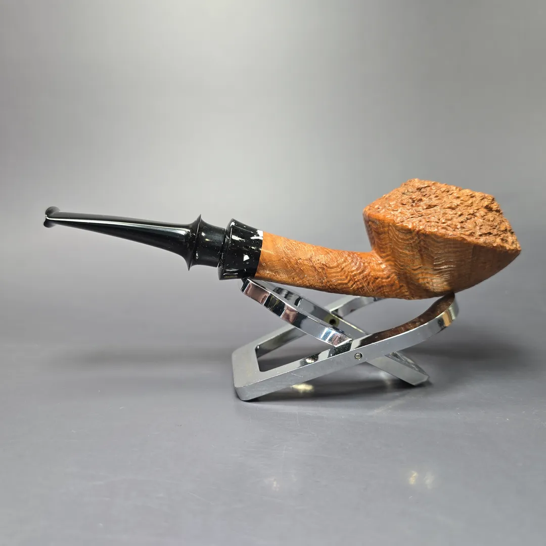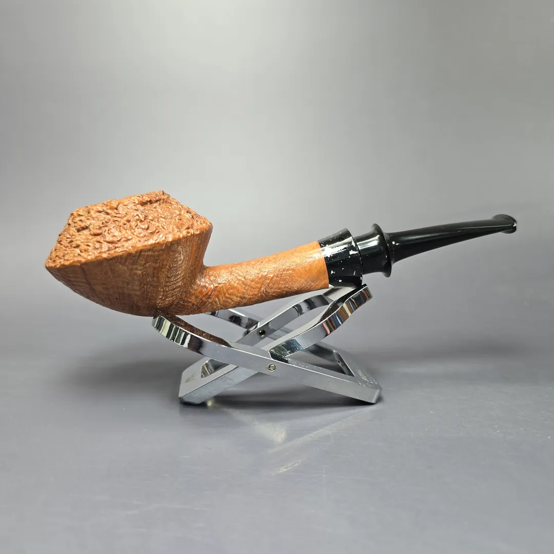 Over the past few years, Tristan Lefebvre has shown a real proclivity toward bulldog and Rhodesian shapes, and a great variety of them too. From the “BoDogs” Bo Nordh and Geiger, to the Dunhill O and the GBD 9438, Lefebvre has proved himself more than capable of producing high-grade homages, while also creating plenty of more unique designs. This one, which I believe was made in 2024 or ’25, is an example of the latter. While there are affinities between it and the famously squat and broad Dunhill shapes, it is also far more contemporary, with its long, flaring shank and mouthpiece, mineral-like Finnish Durat accent, and mixed finish, pairing Lefebvre’s signature Granite rustication with a crisp, tan sandblast.