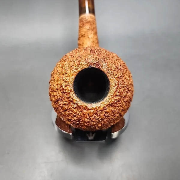 The squat tomato is a shape that, in theory, should not work, but in practice, it absolutely does. One might locate its precedent in the Ukulele shapes of Sixten Ivarsson, who, according to one Pipedia editor, pioneered the exploration of horizontal space in pipe design. Thanks to the further explorations of other danes, such as Tom Eltang, Japanese masters such as Tokutomi, and American artisans such as Nate King and Scott Klein, it has become something of a rite of passage for carvers to see for themselves what this low-slung fruit can do. Here, Tristan has hoped to blend the shape with the traditional prince, dressing it in his signature Granite rustication and a desert sand stain. It’s a beautiful pipe, but it’s also a very sturdy one – perfect for virginia blends, ribbon cuts, aromatics, or other blends that tend to burn a little hotter than others.