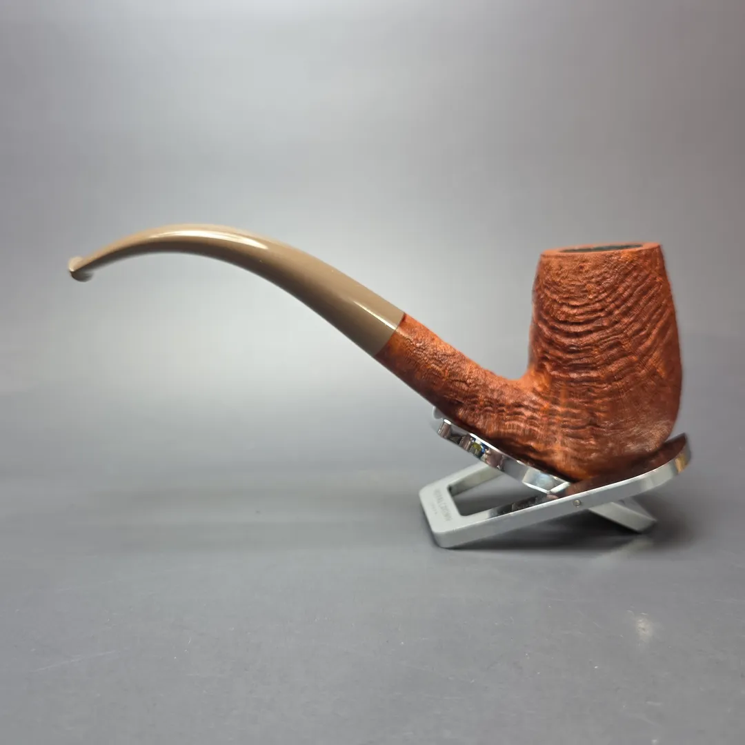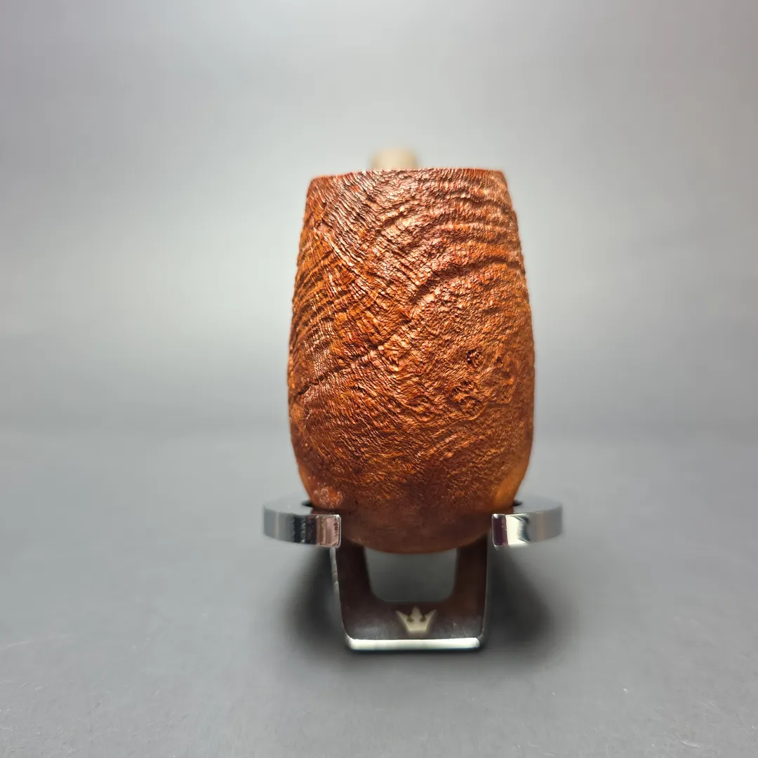 In this latest batch of pipes for us, Tristan Lefebvre continues to demonstrate his mastery of the form. This one, for example, pays homage to the curious subset of interwar Dunhill pipes that have come to be known—thanks to the late Dunhill historian John Loring—as the “120LC,” or “120 LC.” These were nominally Dunhill 120 shapes but, for some reason, they were closer to the shaping conventions of the LC, but not quite as large. It was, however, still a large pipe, with this one following suit, while also wearing the kind of rich sandblast relief finish associated with such pipes.