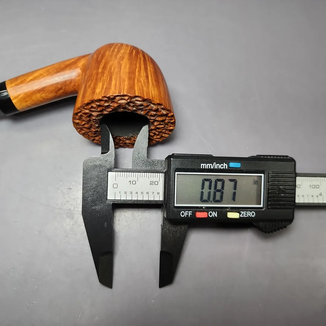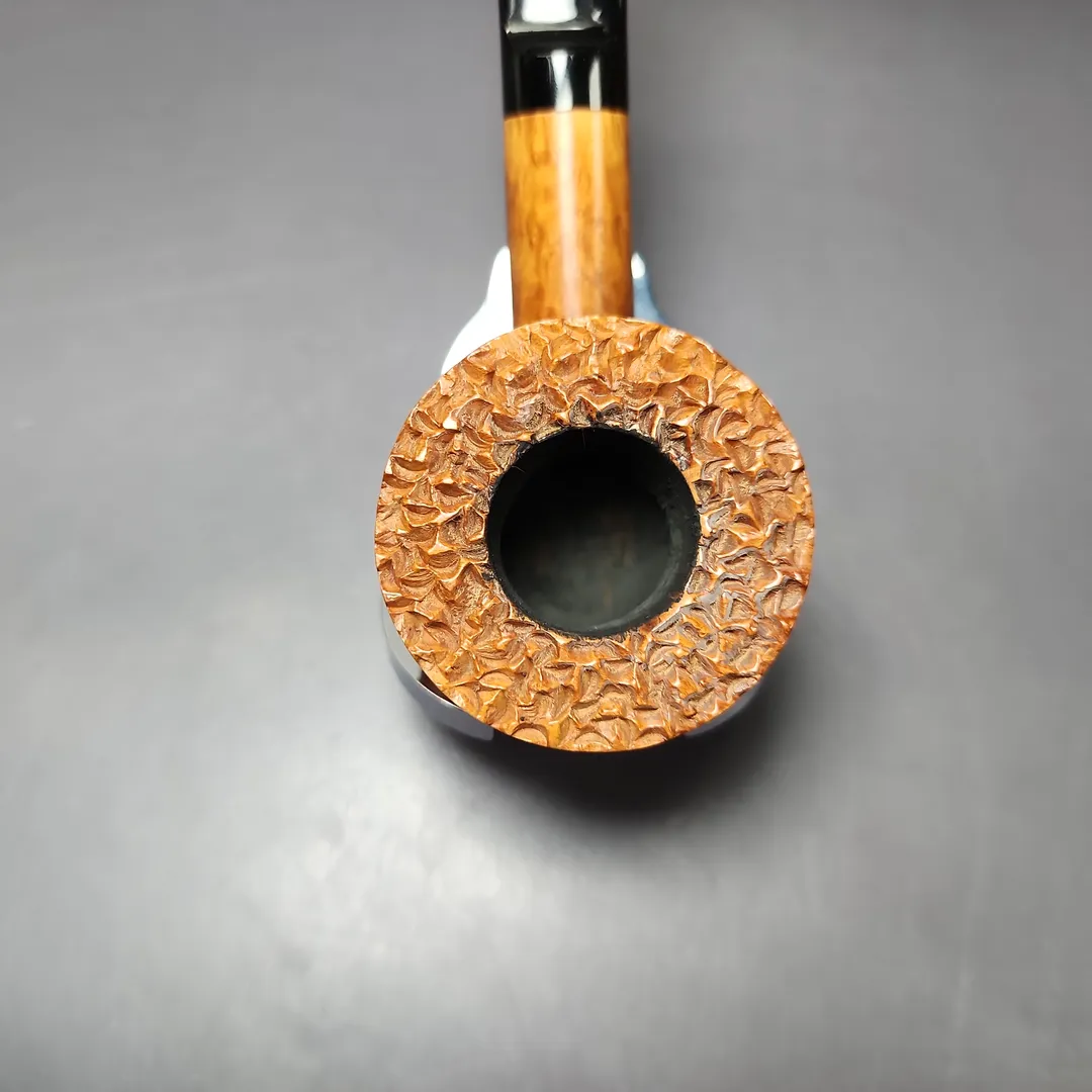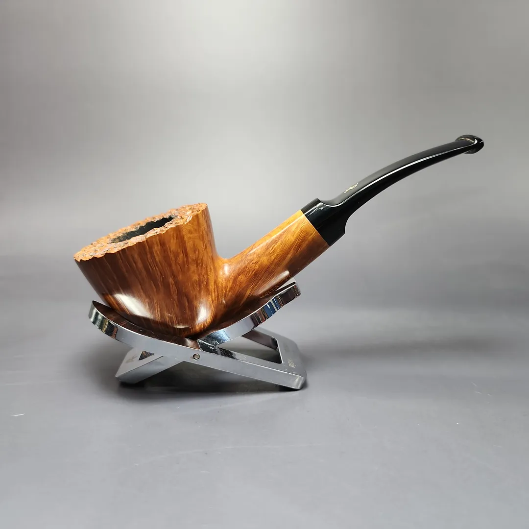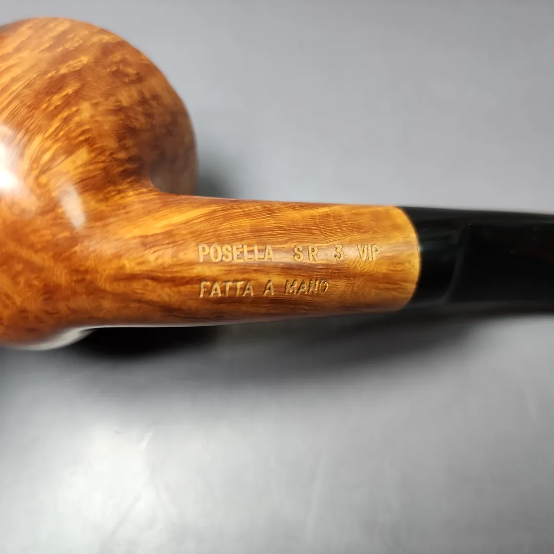 This broad, pot-Dublin hybrid, for example, is an SR3 VIP grade. “SR” indicates that it is a smooth pipe in a natural finish, with a very small amount of rustication, which can be seen in the pipe’s faux-plateaux rim. It is an “SR3” because natural finish, partially rusticated pipes are additionally graded from 1 (the lowest in the bracket) to 3 (the highest). It is an “SR3 VIP” because some pipes within the natural finish, partially rusticated “SR” bracket exceed even the standards of a grade 3, thus qualifying them for “VIP” status (“VIP” stands for “VItaliano Posella in this context). Posella himself seems to have thought quite highly of this pipe. Looking at it, I can see why.