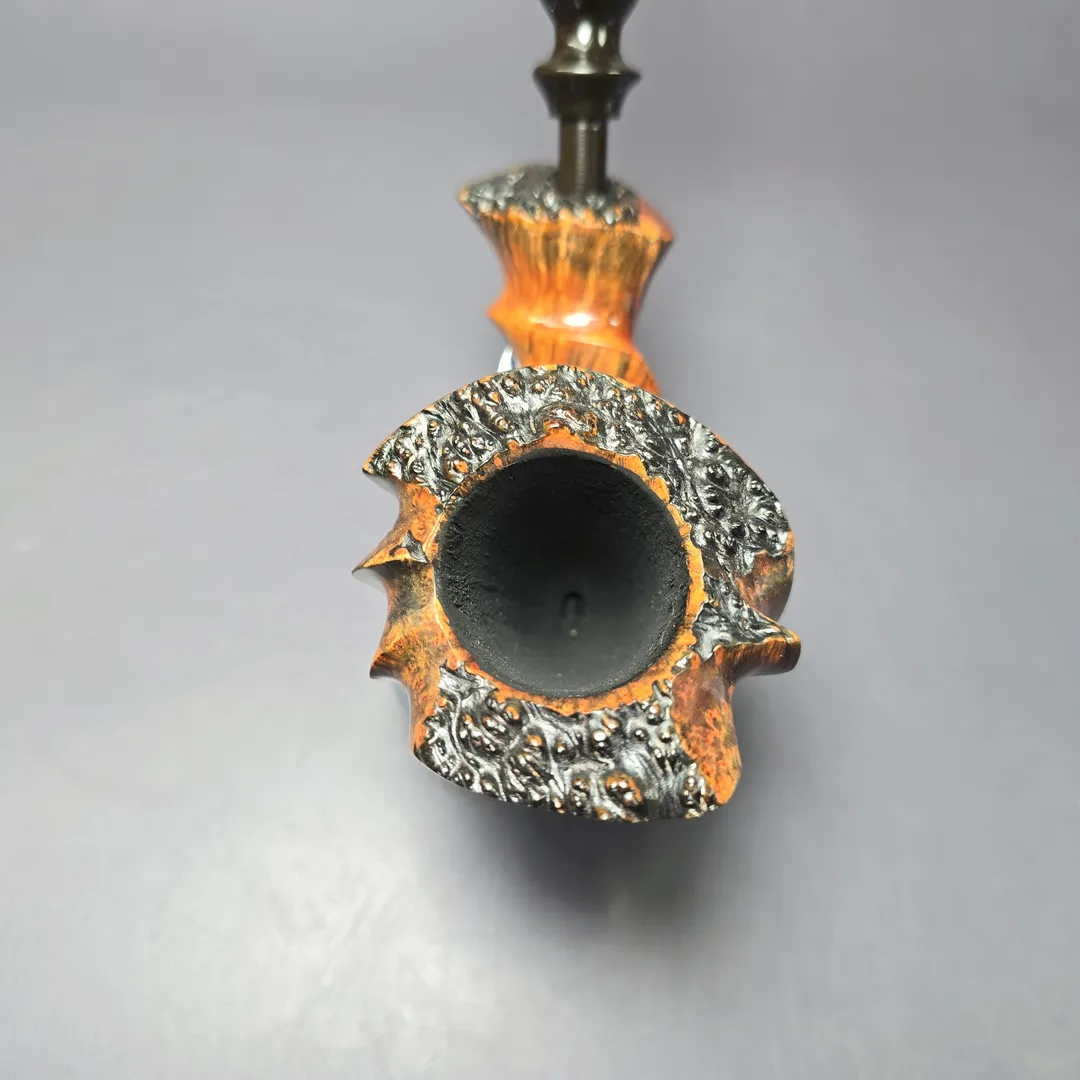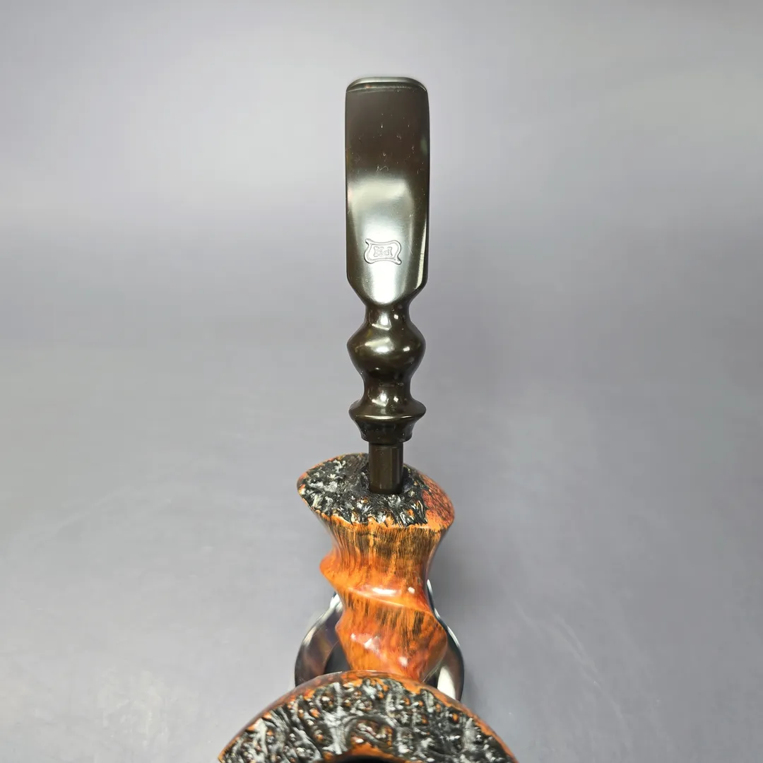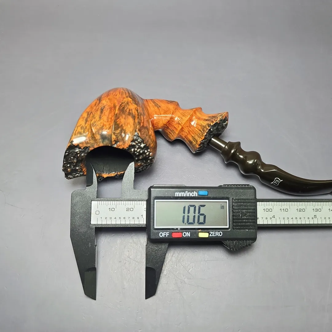 One of the names originally associated with the Scandinavian freehand movement was the “fancy,” or the “Danish fancy.” This term was largely used to denote pipes that we today would simply call “freehands,” not unlike the Nording Freehand lines that dominate the genre today, though not exclusively. Additionally, the word “fancy” did not first arise from the Danish language but was a borrowing from English, particularly as a descriptor of something “modern.” Early catalogs from workshops like WO Larsen, for example, separated their most unconventional shapes from their regular (though still very “Danish”) shapes by referring to the former as “Fancy.” The notion of the Danish Fancy evolved over time, becoming more synonymous with the contemporary “freehand,” likely in part to the sheer force Preben Holm’s name carried in Danish pipe making. For example, this Fancy 100 grade is exemplary of the genre, featuring its signature plateaux burl rim, Holm’s expert use of furls and furrows, and, of course, lavishings of contrast-lit flame grain.