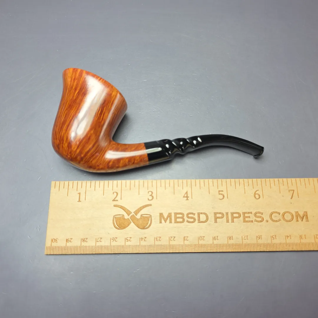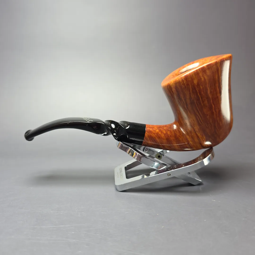Thus, here we have an example of the absolute zenith of Preben Holm’s work (a Private Collection D/808 grade), that is also a rare example of what Holm thought a more “traditional” ultra-high-grade pipe should look like. There are striking parallels between this pipe and some of the Dublin renditions made by notable W.O. Larsen alumni, such as Teddy Knudsen, though perhaps more than anything, it further demonstrates that Holm could make just about anything if he put his mind to it.