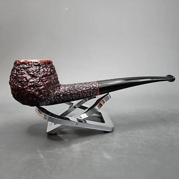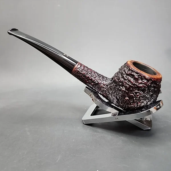 In other listings, I’ve talked about Radice’s rustication style and how it compares to, say, Castello or Savinelli. I speculated as to whether the ‘Rind’ nomenclature gestured at citrus peel (i.e., rind) as opposed to the stony symbolism of the Sea Rock Briar or Rock Grain lines. This Radice, however, appears more in keeping with the geological theme of the make’s compatriots. The pebble-dash approach here is deep and craggy, and covers the entire stummel save for its underside and rim (a nice touch). As a side note, the ’34’ on this Radice is not a shape code, but rather indicates the year of manufacture – 2014 (1980+34).
