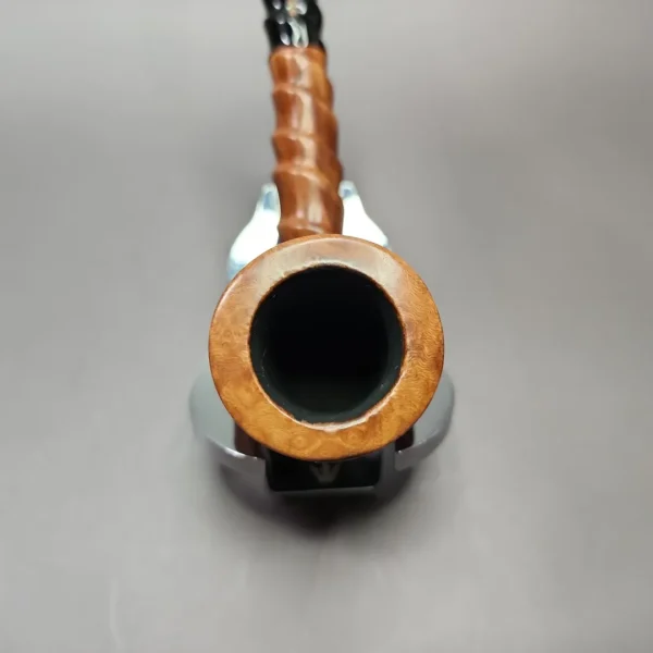 Taking its name from the Italian for “ruby,” the Rubino line has become relatively uncommon in recent years. The other interesting thing about it, at least to me, is that, amidst a field of virgin blonde Italian pipes, it’s a finish that recalls, instead, the deep red hues of classic English makes. This particular Rubino does, however feature one of Radice’s more idiosyncratic design elements, that being a spiral shank that transforms the pipe from a fairly standard Lovat to something highly distinct.