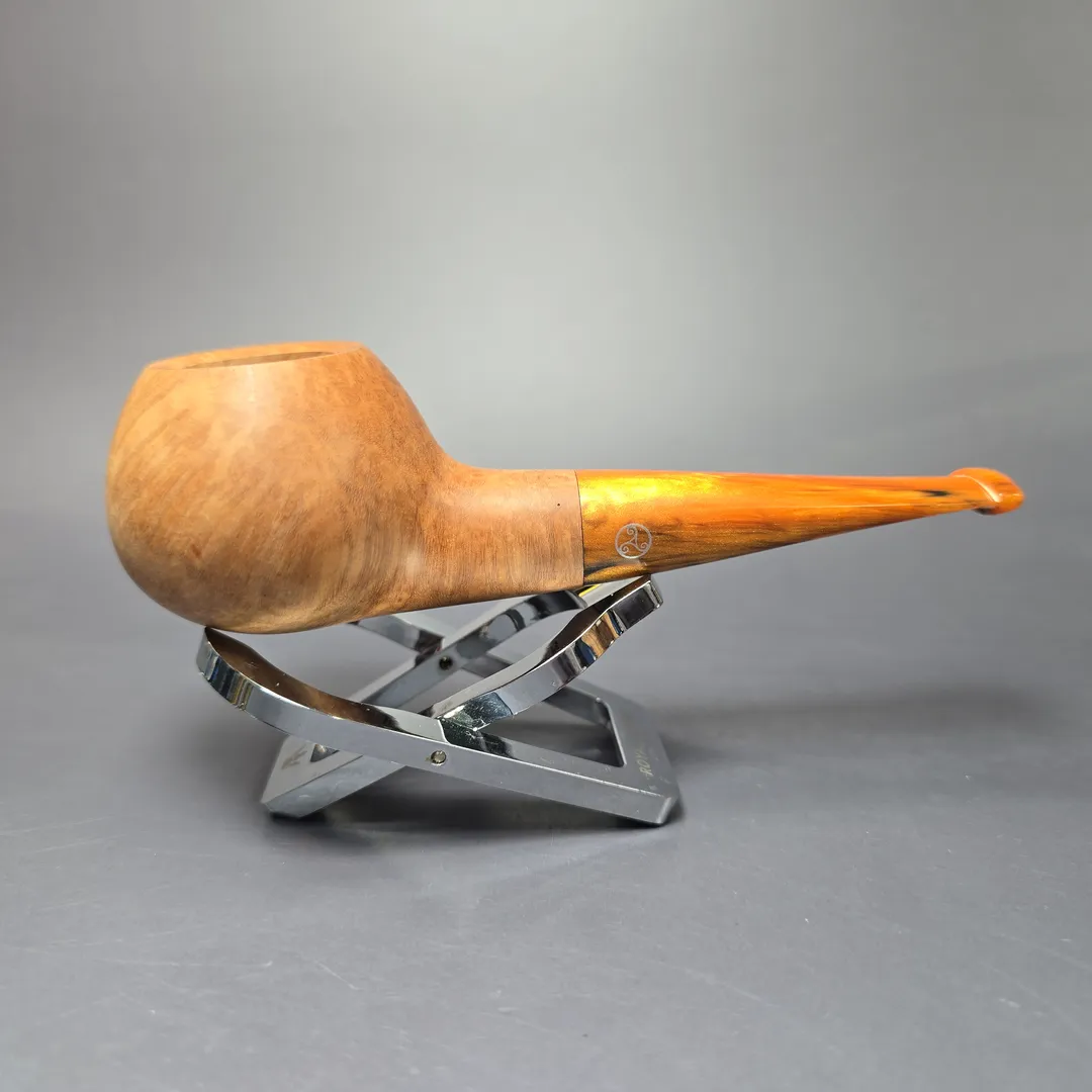 The Fudge was one of a number of rather interesting Rattray’s lines a few years back, for which Rattray’s collaborated with [oc]cult-favorite British artisan Chris Kelly, of Eldritch Pipes. Kelly is known not only for his pipes, but for pipe making materials, specifically Eldritch resins, which artisans around the world use for their own pipes. It was only a matter of pipe before a major pipe company would do the same, and that company would end up being Rattray’s. True to its name, the Fudge line featured special, candy-like mouthpieces cut from a resin that Kelly blended specially for Rattray’s. This resin is somewhere between ebonite and acrylic, being softer than the latter yet more resistant to oxidation than the former. The Fudge also featured essentially naked finished bowls, which were free from flaws and which would, over time, develop a golden patina akin to their namesake.