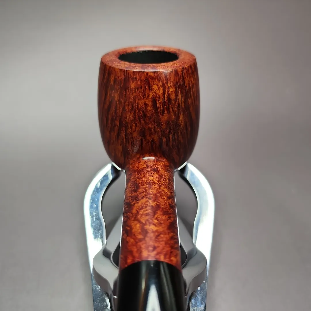 In 1984, when Per Hansen and Ulf Noltensmeier took over the S. Bang make, there were a number of changes that took place. Unlike in previous years, S. Bang pipes were now made solely by Hansen and Noltensmeier; the place of manufacture stamp in the S. Bang nomenclature was switched from its Anglicized form, “Copenhagen,” to the original Danish, “København”; and markings indicating which of the S. Bang craftsmen made a particular pipe became slightly more common. I say “slightly” because pre-1984 S. Bangs had occasionally featured indicators of their maker, and because Hansen and Noltensmeier only included such information on their own work only for specific groups of pipes. Pipes made for the European market, for example, feature grade stamps and, on the high grade pipes, the initials of whoever made it (PH for Per Hansen and UN for Ulf Noltensmeier). Pipes destined for the American market, on the other hand, do not feature grade stamps, as S. Bang only sent high grade pipes to America (and, by “high grade,” I mean their highest grades, as all S. Bang pipes are high grade). These pipes instead feature a date and serial number (sometimes as one code, depending on the year) and, commonly, the initials of their maker. This S. Bang, made by Ulf Noltensmeier in 2006, is a beautiful middle ground between the classic pot and Liverpool billiard shapes, with just perfect grain in every regard.